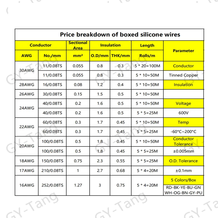Please pay attention to the first picture regarding the thickness and quantity of tinned copper wires for different specifications of AWG.