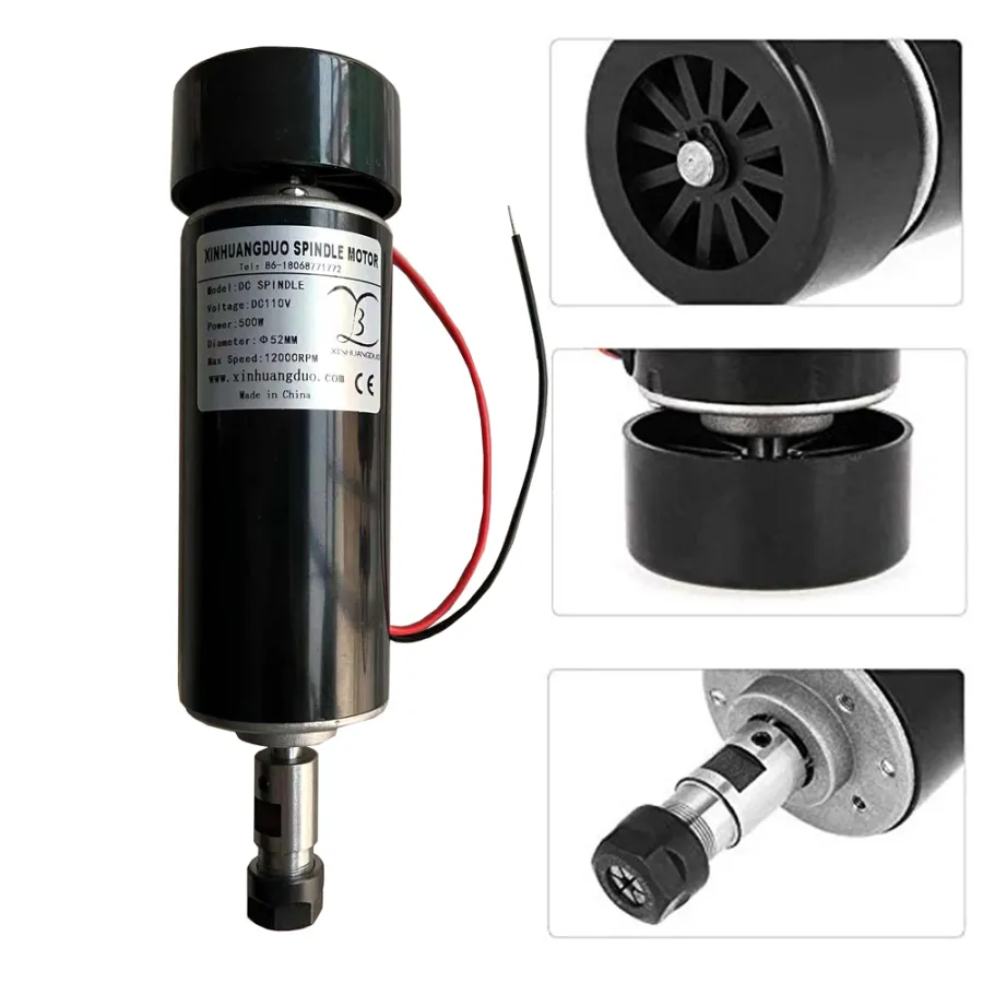 0.5kw Air Cooled Spindle Motor ER16 Chuck CNC 500W DC High Speed Spindle Motor 110VDC 12000RPM For PCB Engraving