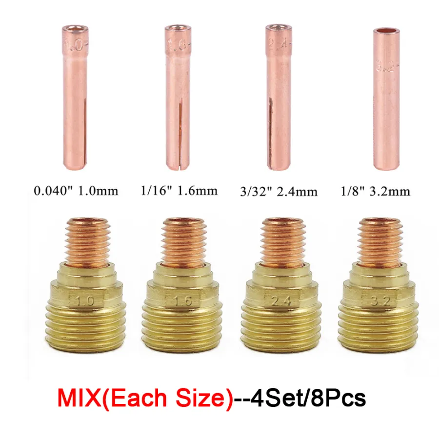 WP9 WP20 WP25 Argon Welding Torch Consumable Collet Body 1.0mm 1.6mm  2.4mm 3.2mm  TIG Tungstens Electrodes Collet