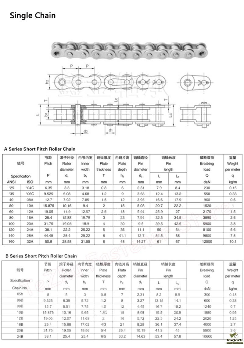 304 Stainless Steel Roller Chain Links Link as Follows:
