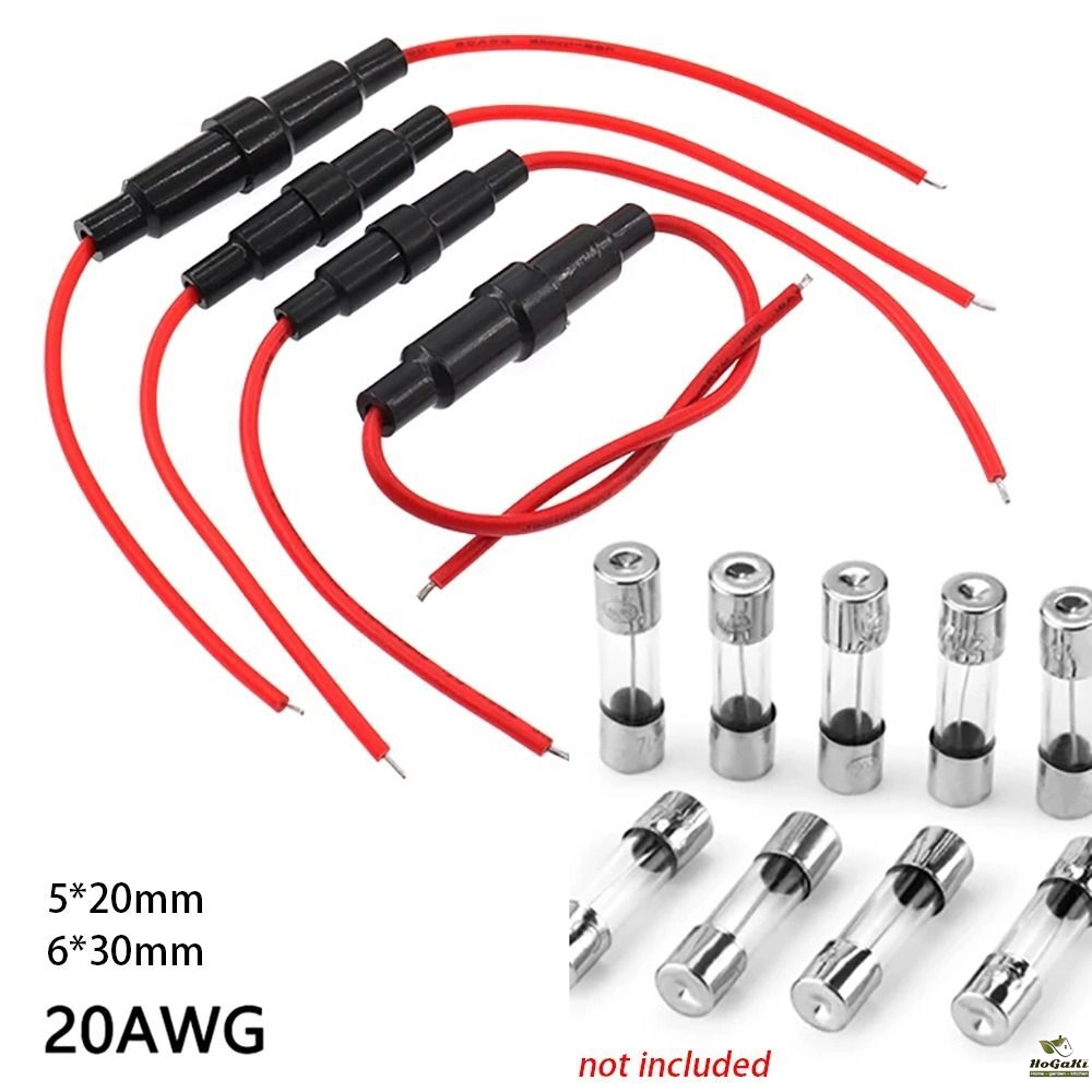 Brand new and high quality Type: For 5x20mm(0.20x0.79in) 6x30mm(0.24x1.18in) fuse holder Wire Size: 20AWG Copper Supported current: Below 5A Cable Length: 110mm(4.33in) + 110mm(4.33in) Tube Length:46mm(1.81in) Quantity: 1/10Pcs (Without Glass Fuse) Notice: 1. The real color of the item may be slightly different from the pictures shown on the website caused by many factors such as brightness of your monitor and light brightness. 2. Please allow slight manual measurement deviation for the data. Thank for your understanding. 3. 1cm=0.39''. Package Included: 1x/10x Fuse Holders (Without Glass Fuse)