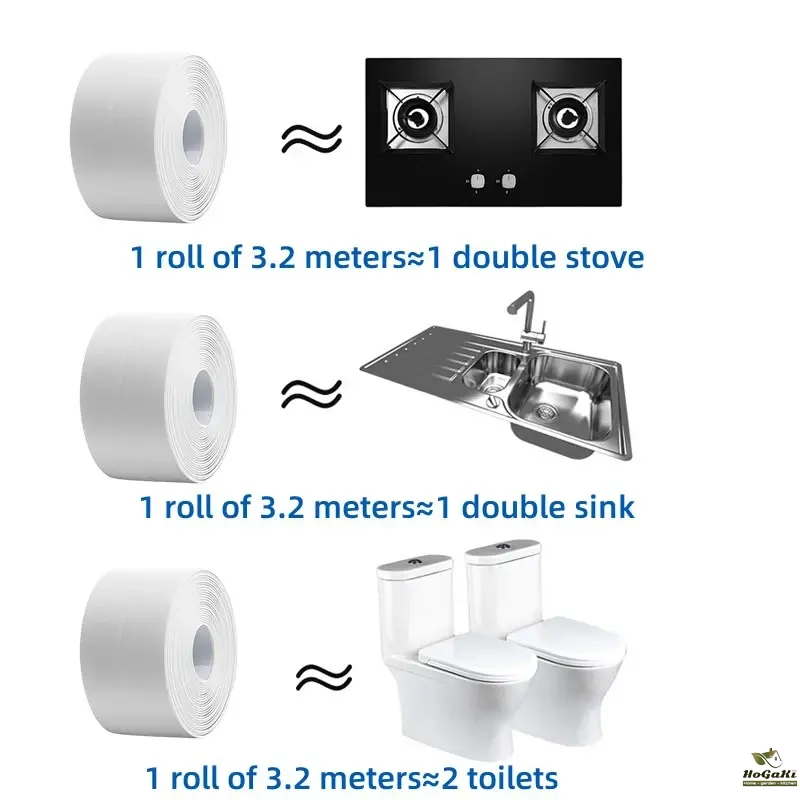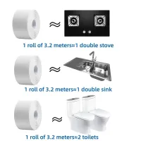 【Wide Application】: Professional self-adhesive waterproof caulk strip can be applied in bathtub, bathroom, kitchen, sink, wall edge, corner, gas stove, toilet, or any smooth surface that is easy to get wet and dirty. The white color goes well with any background.
