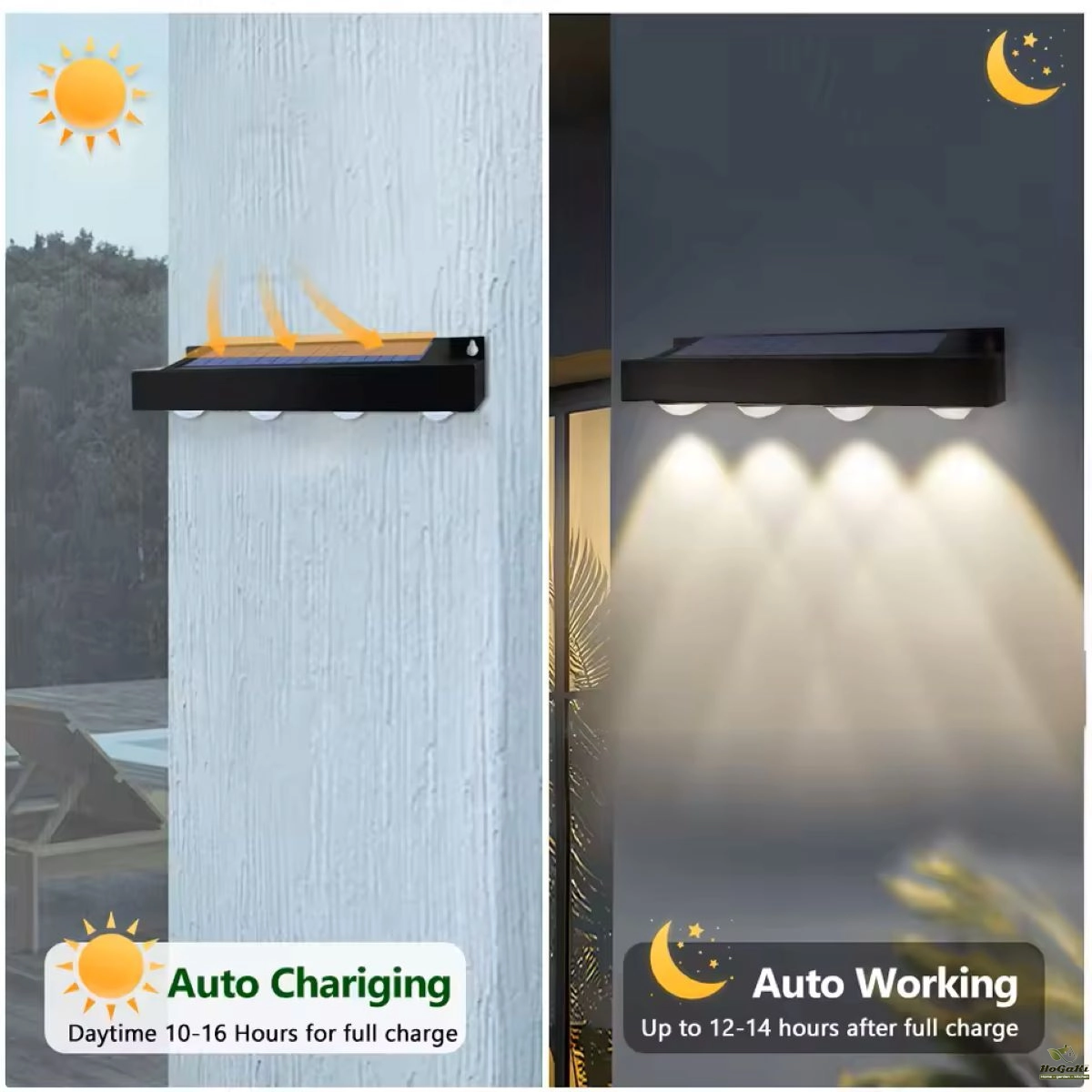Solar LED Outdoor Lighting Plastic Outdoor Wall Lights Waterproof Sensory Switch Easy Installation Adjustable for Home Garden