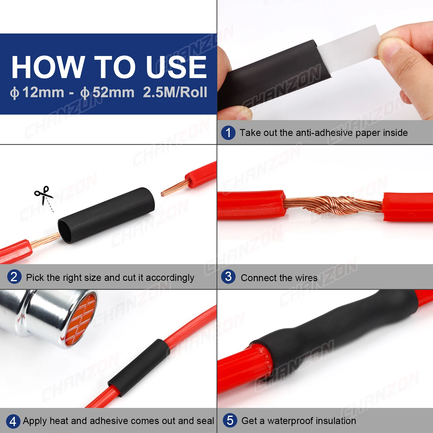 1.22M 2.5M 4:1 4 - 52mm Heat Shrink Tube With Glue Double Wall Adhesive Lined Wire Waterproof Marine Grade Heated Shrinking Wrap