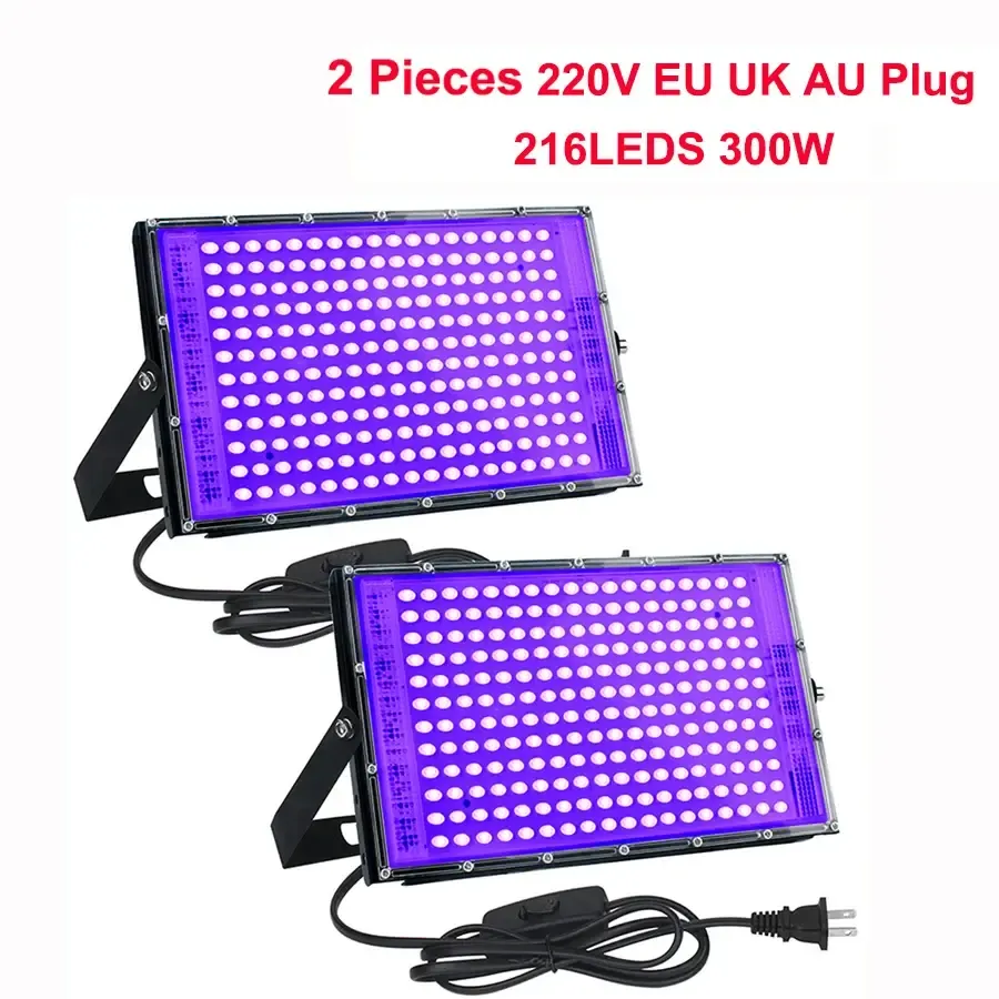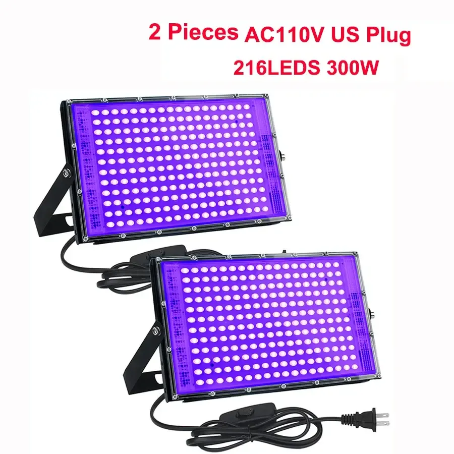 300W LED UV Floodlight 395nm 400nm Waterproof Ultravilet UV Black Light with Plug for Glow Party Stage Dance Party Wedding Decor