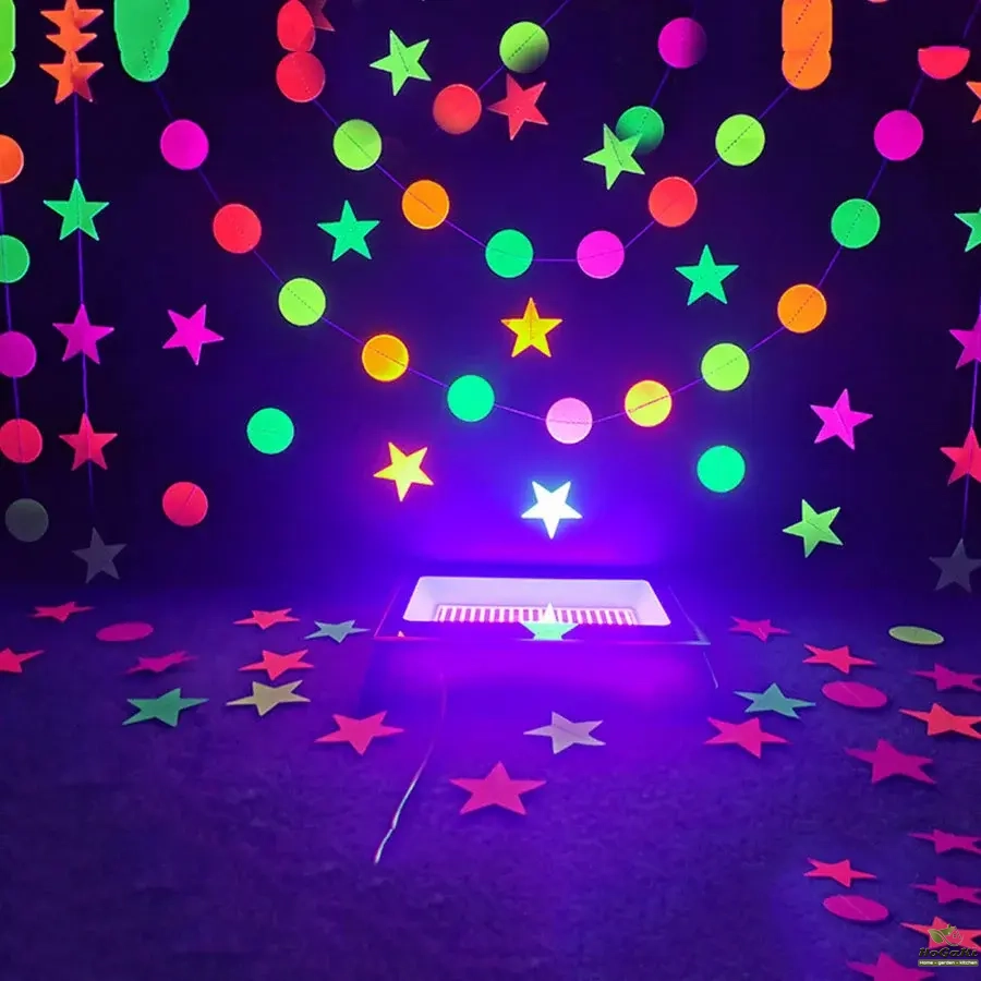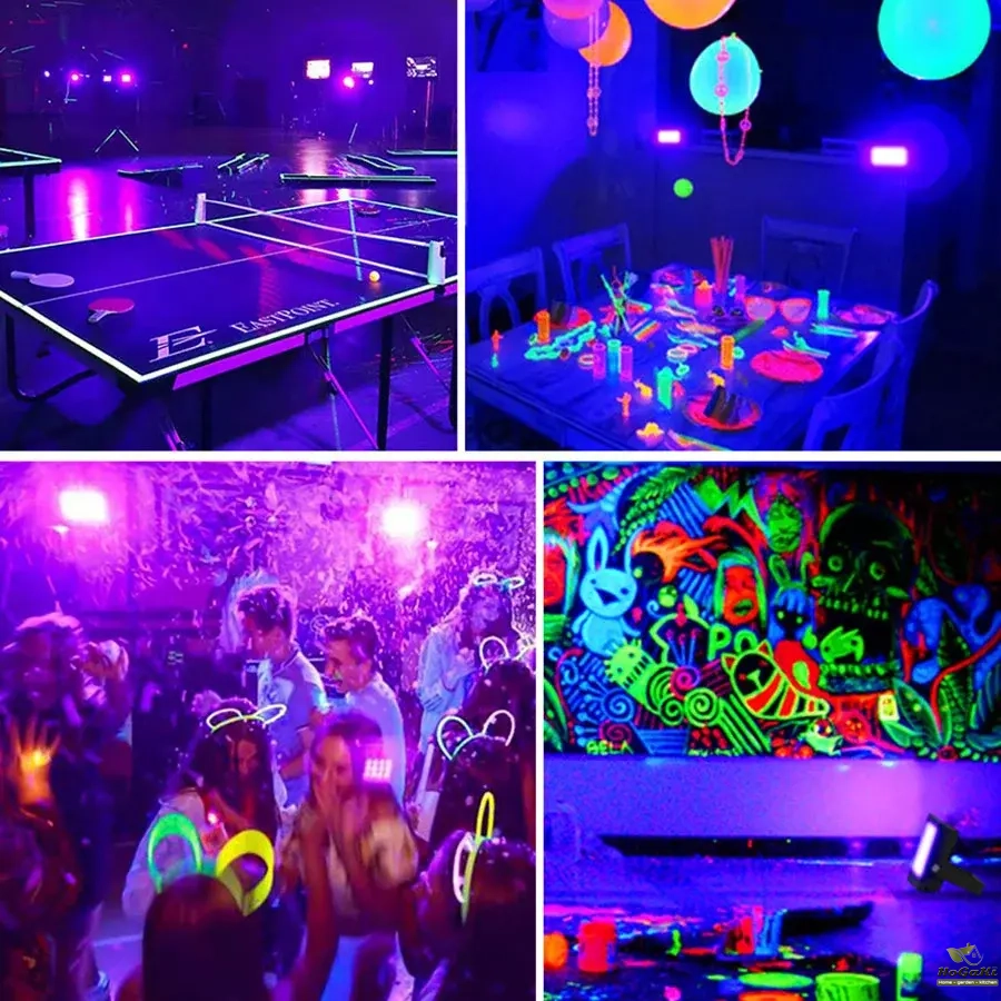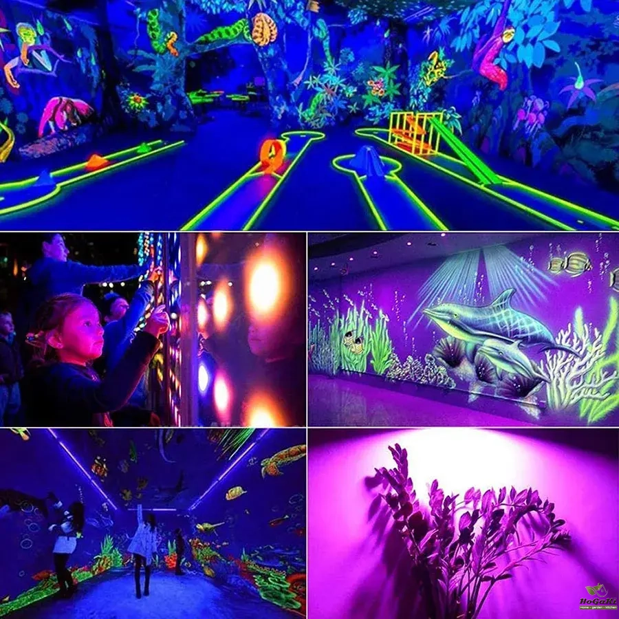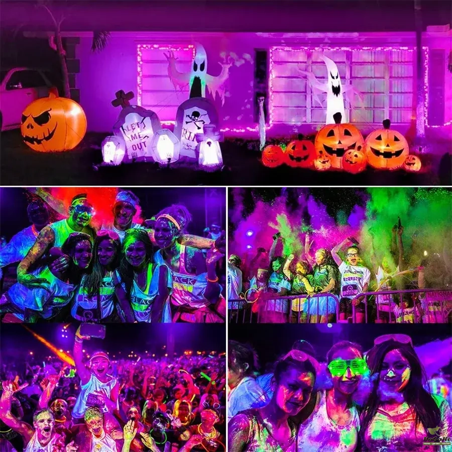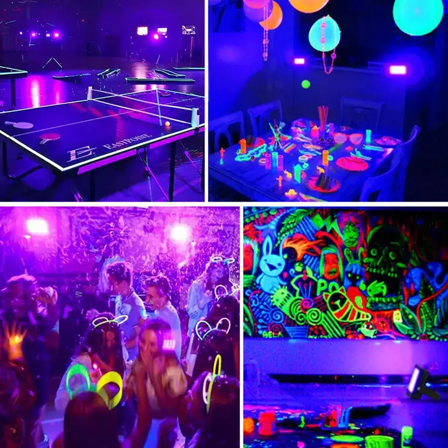 Great Purple black light effect combined with fluorescent materials to bring you the perfect blacklight party atmosphere.