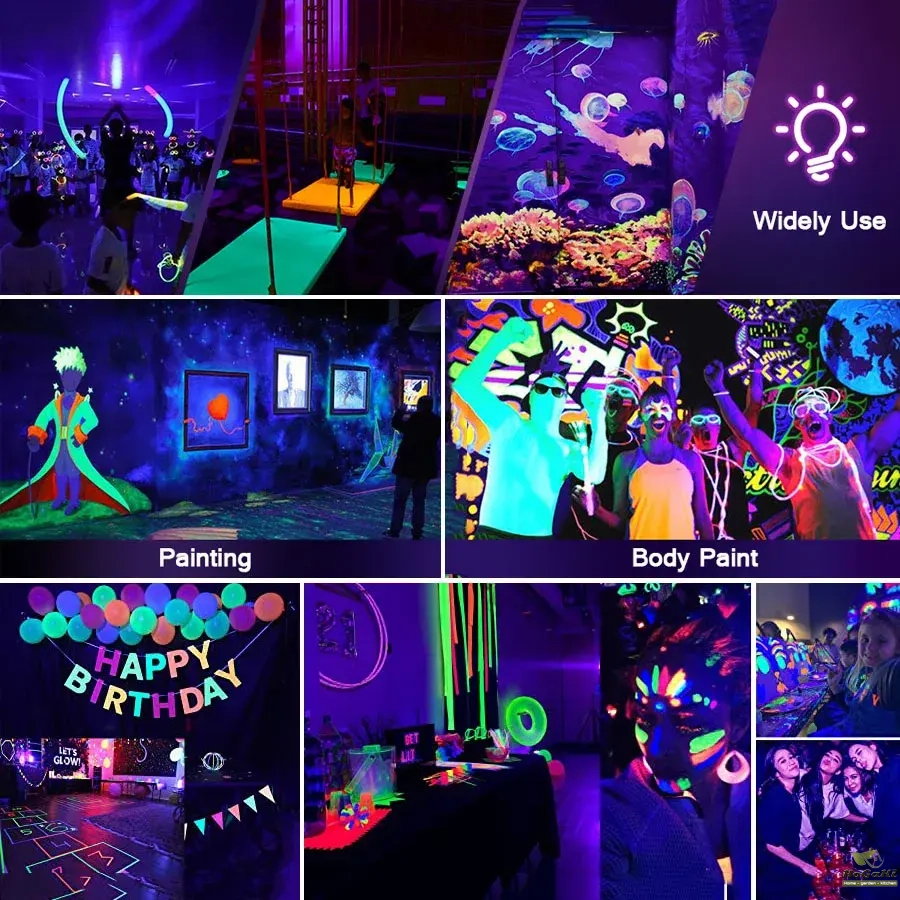 Can also be used in Glow Party, Fluorescent Poster, Body Paint, Aquarium, Glow in The Dark.