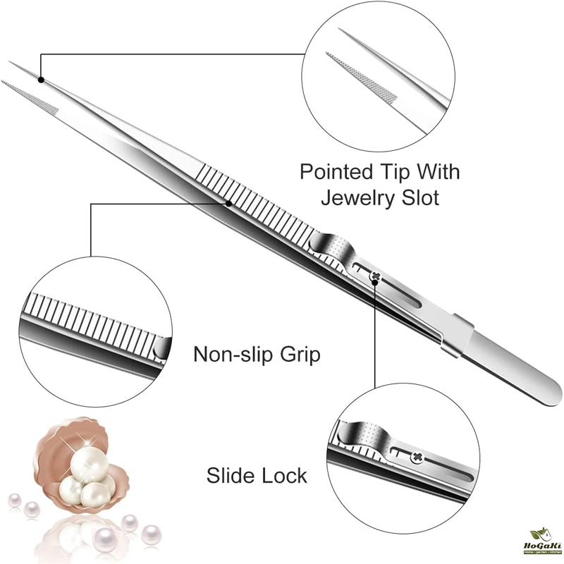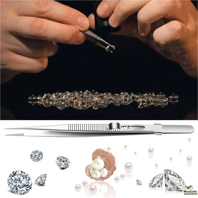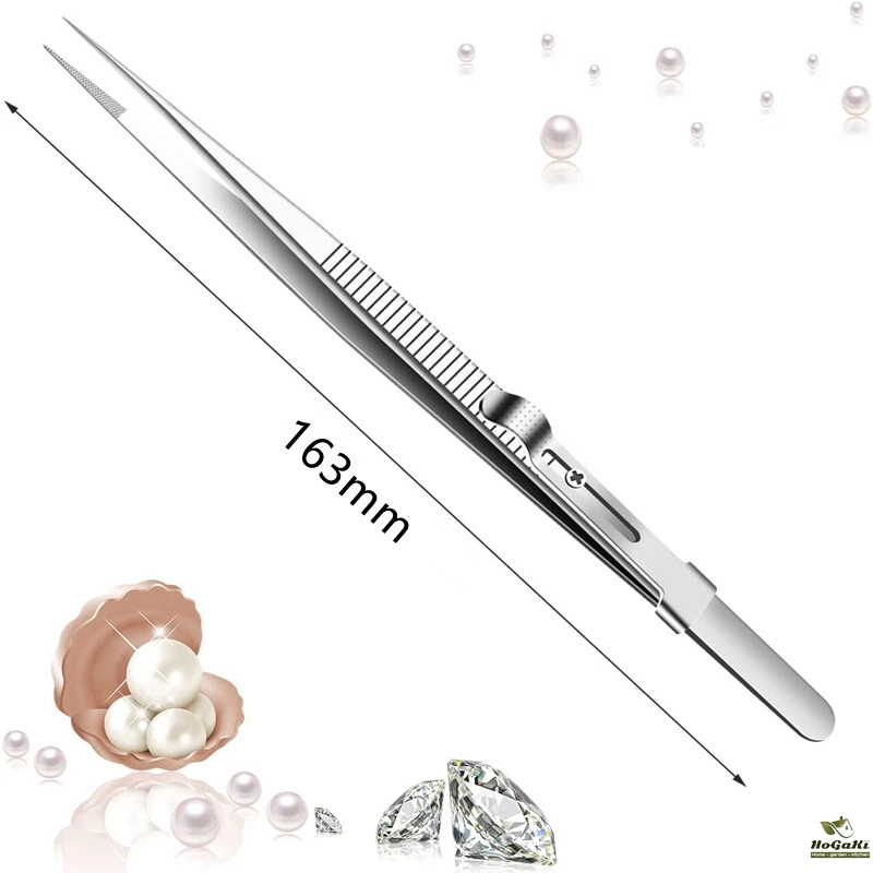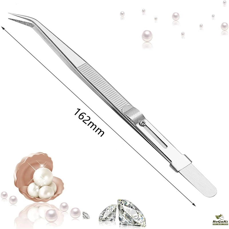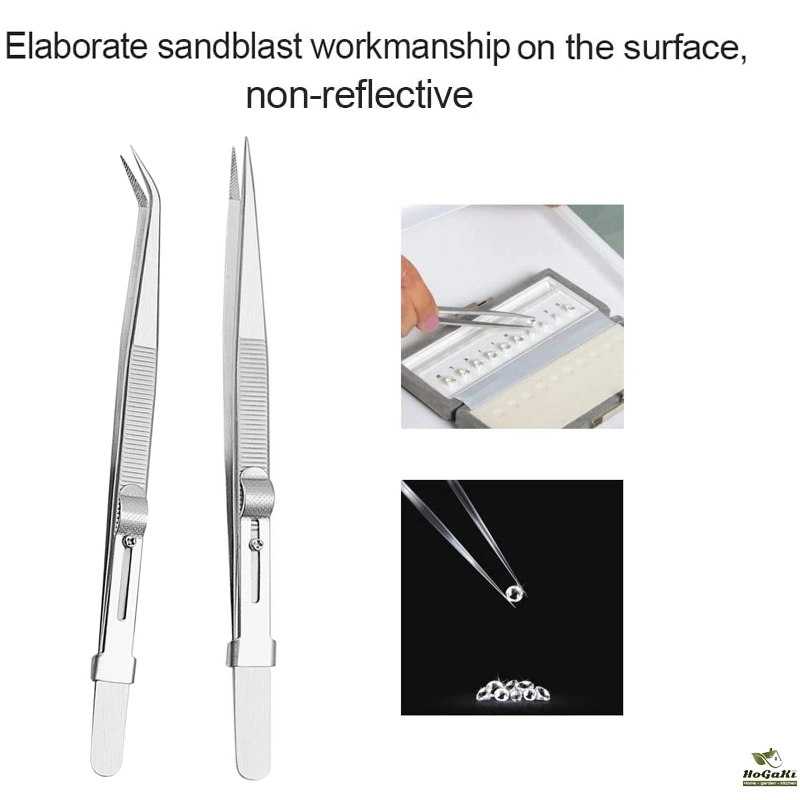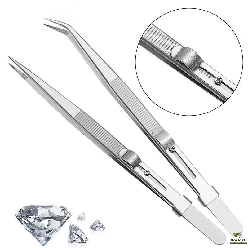 1/2pcs Tweezers Stainless Steel Fine Tipped Precision Tweezers Multipurpose Straight and Curved Non-Slip Locking Tweezer for Jewelry Diamond Stone DIY Craft