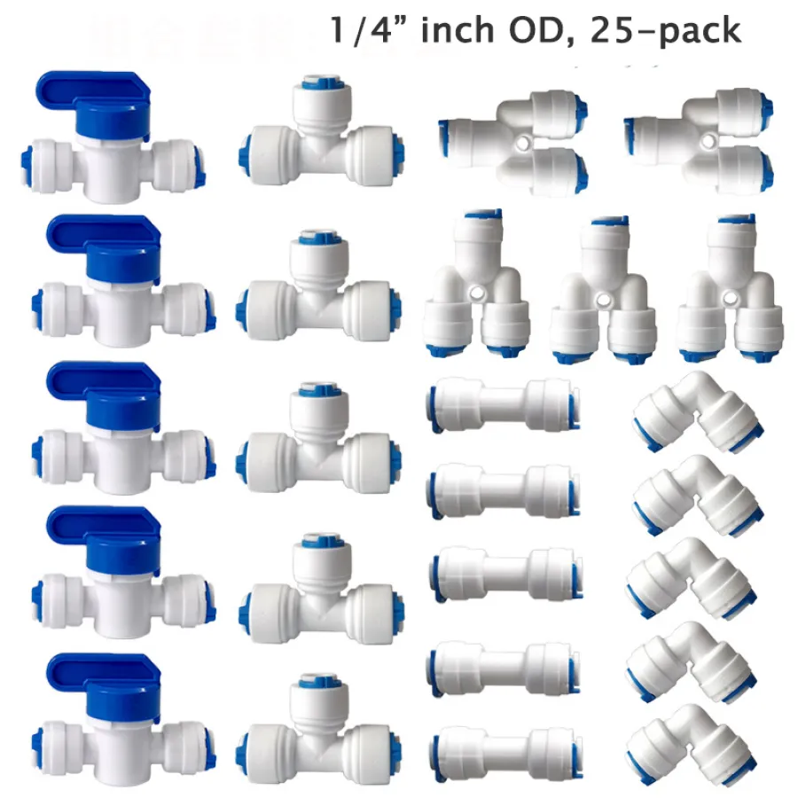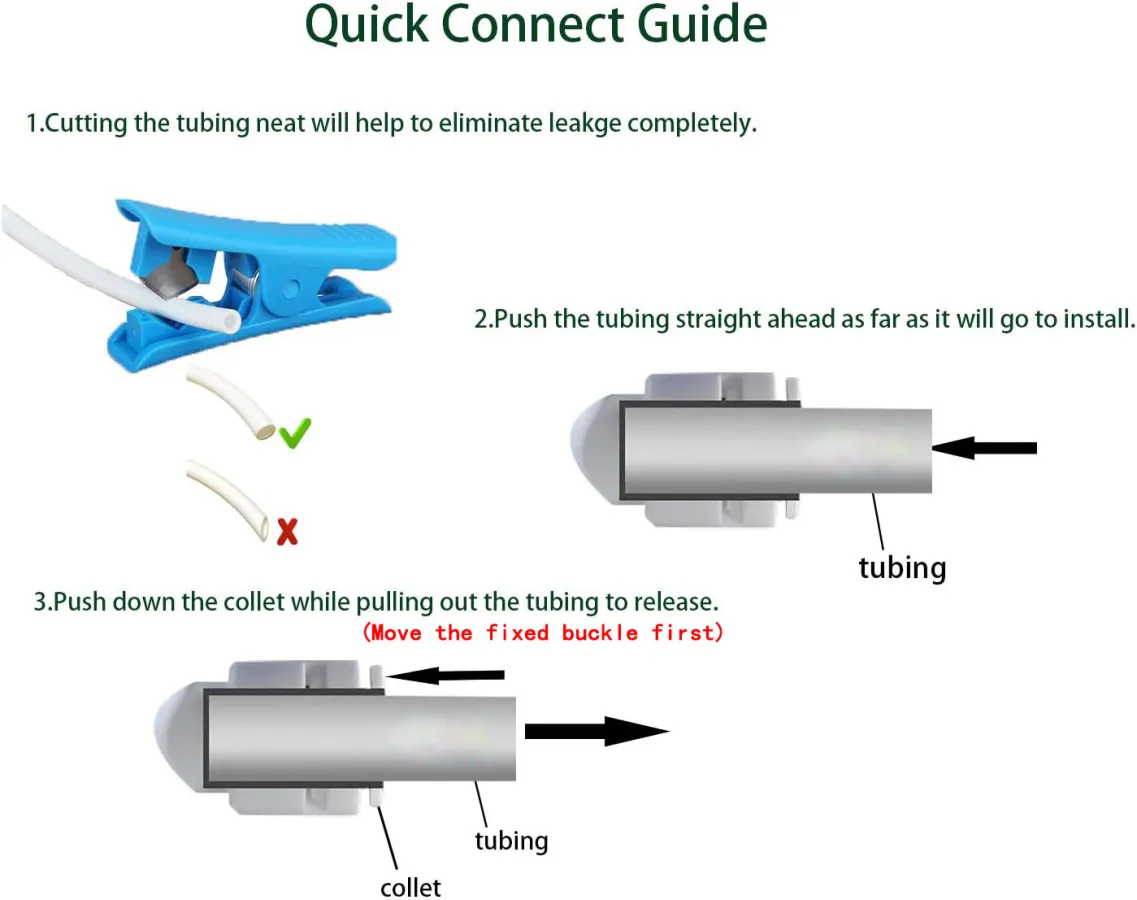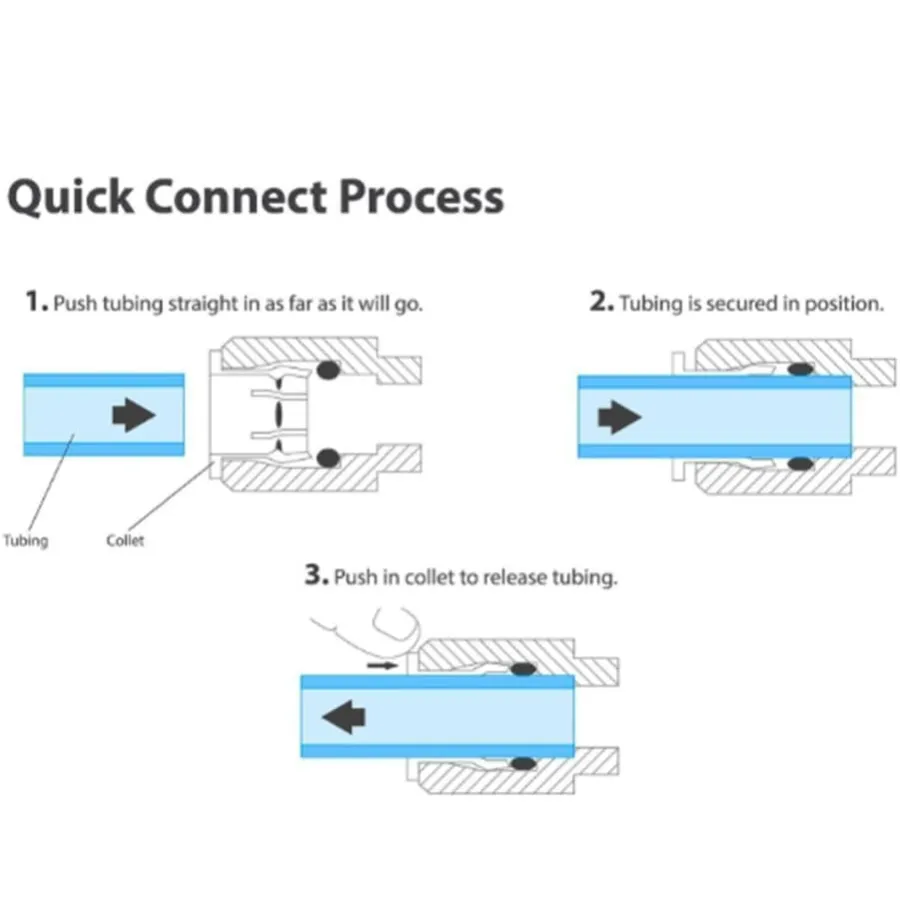 Easy to use, No tools required,Push fit fittings quick connect push 1/4 OD or 3/8 OD