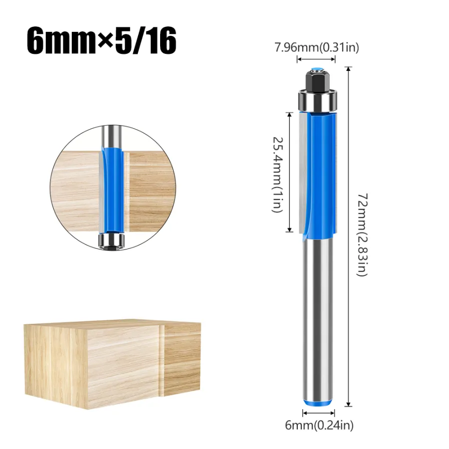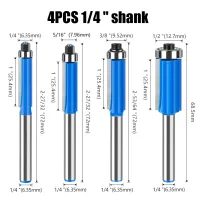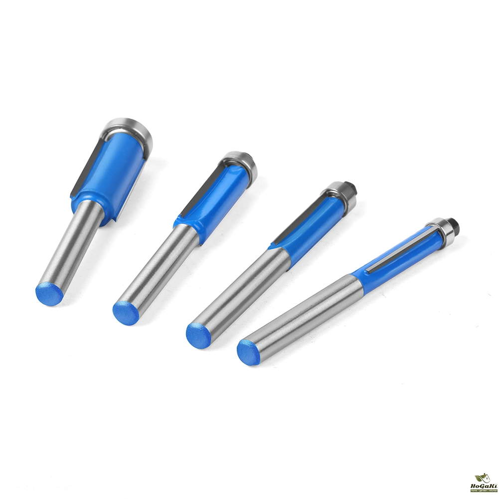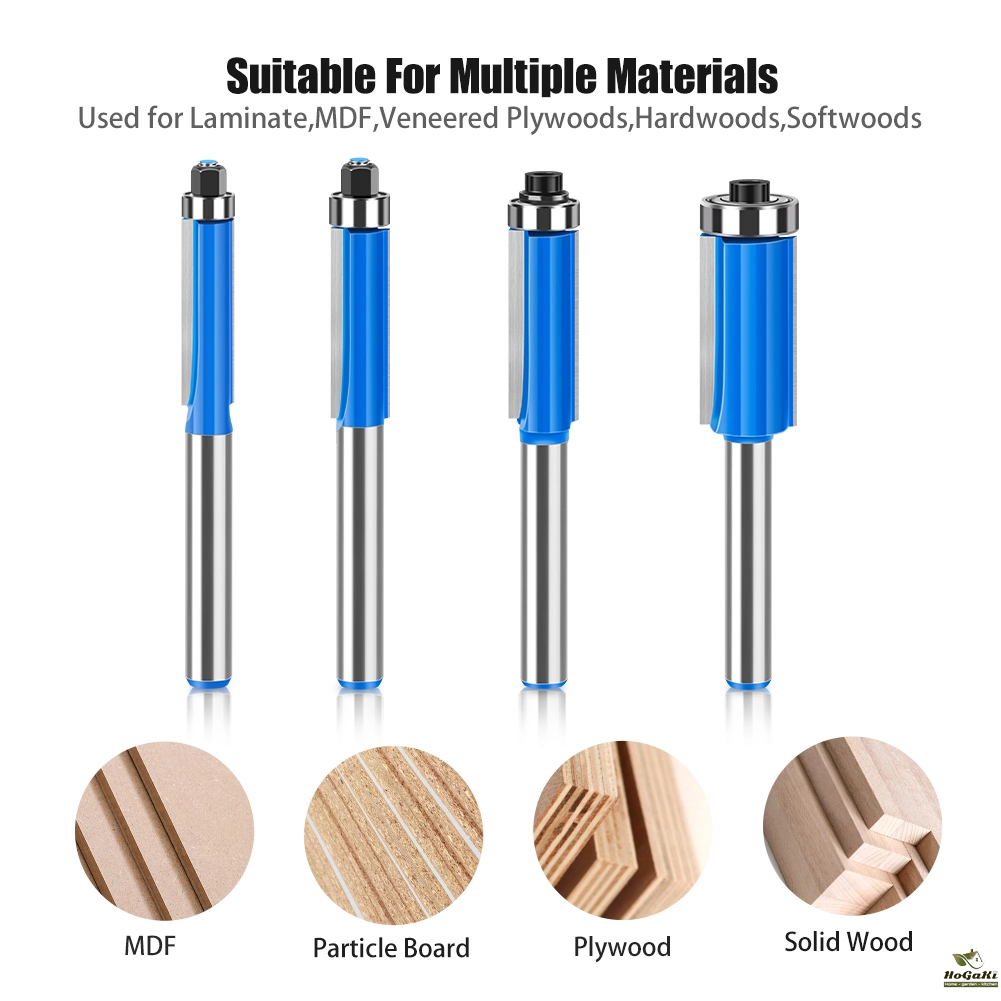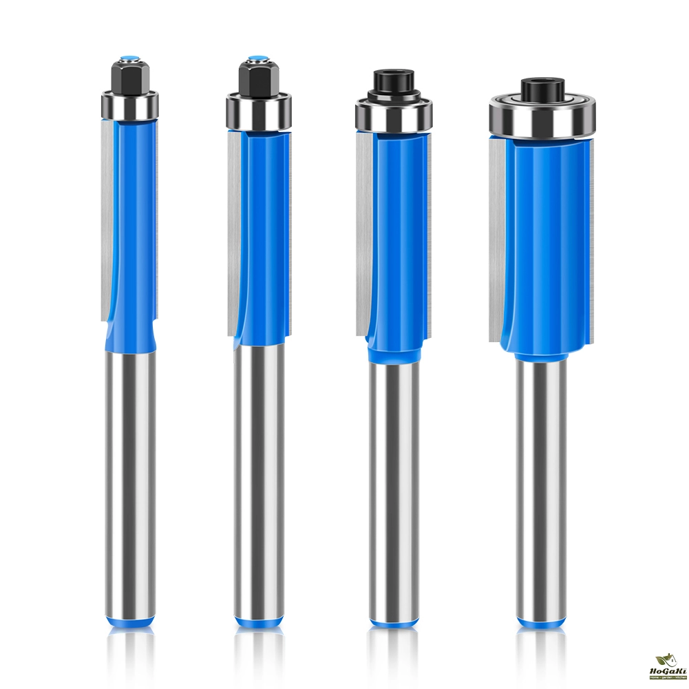 Dreanique 1pc DLC Coating Solid Carbide Bearing Guided Milling Cutters 2 Flutes Spiral Flush Trim 8MM Shank Woodworking End Mill