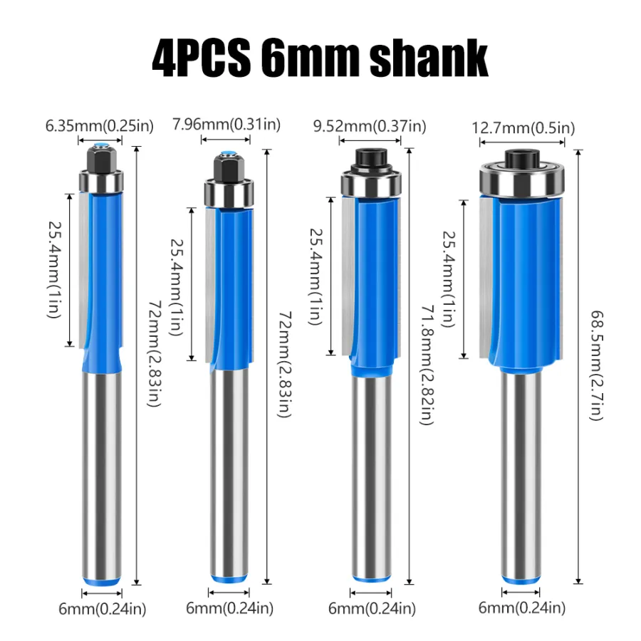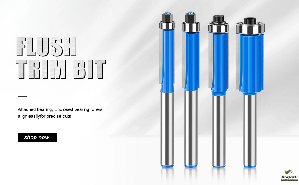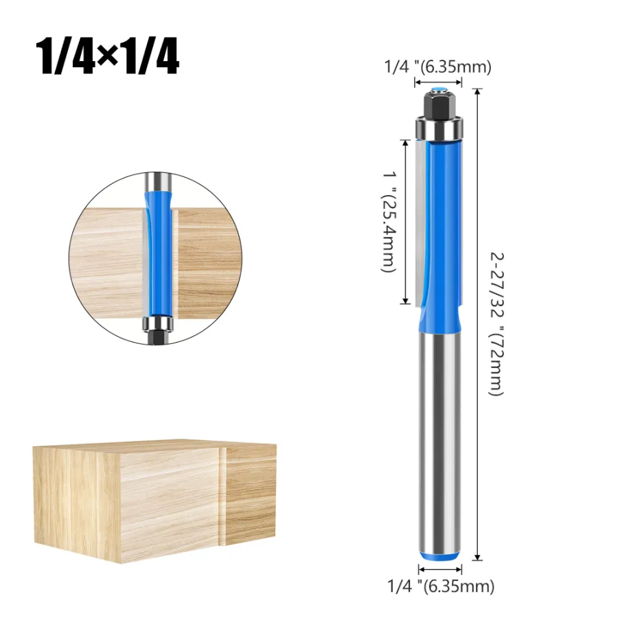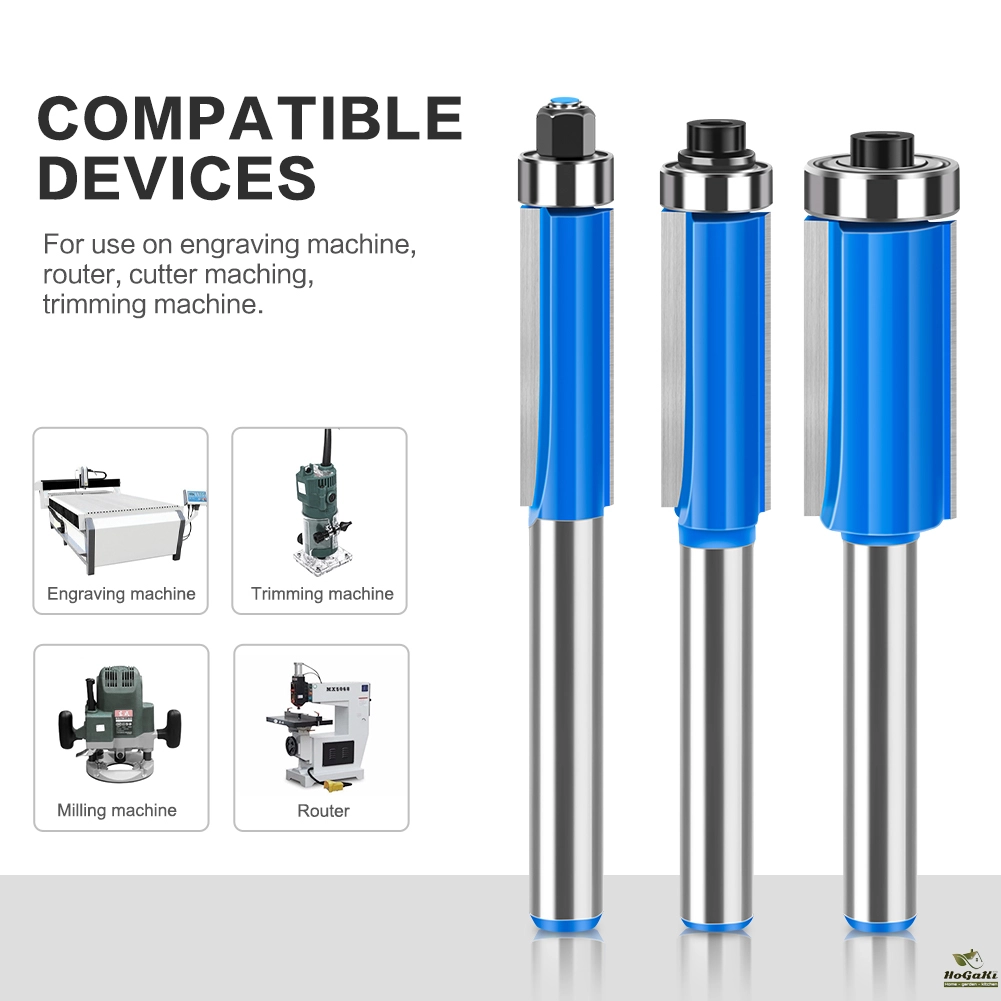 Dreanique 1pc DLC Coating Solid Carbide Bearing Guided Milling Cutters 2 Flutes Spiral Flush Trim 8MM Shank Woodworking End Mill