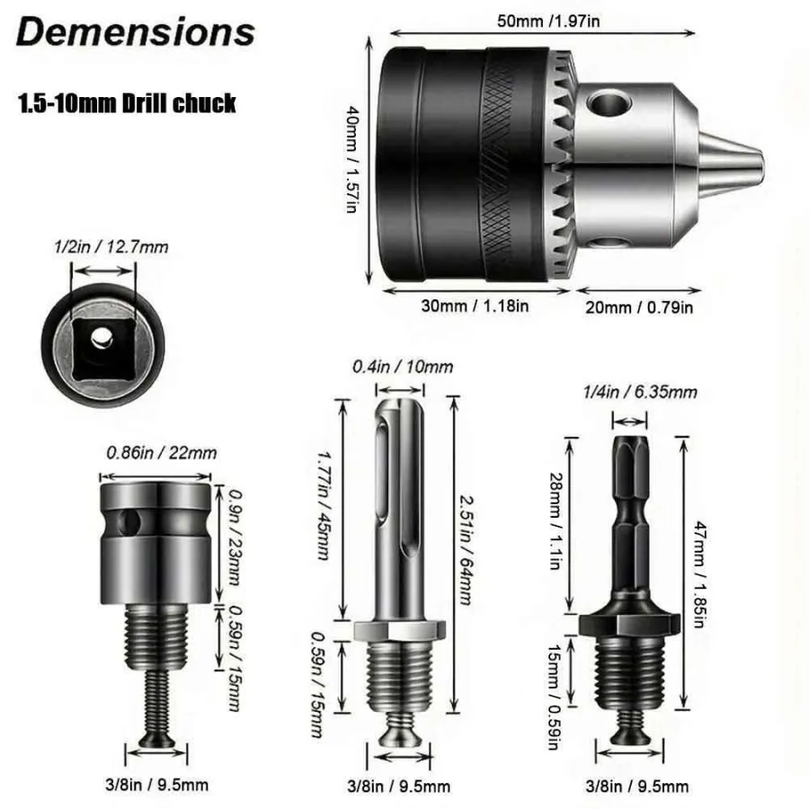 ✅Connection Size:3/8"-24UNF, Clamp Range:1.5-10mm.100% brand new and high quality.Nice drill chuck replacement/upgrade on your drill.