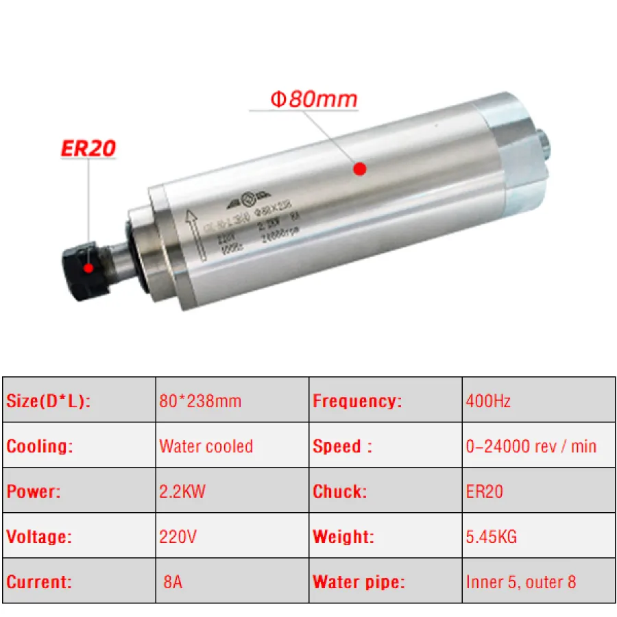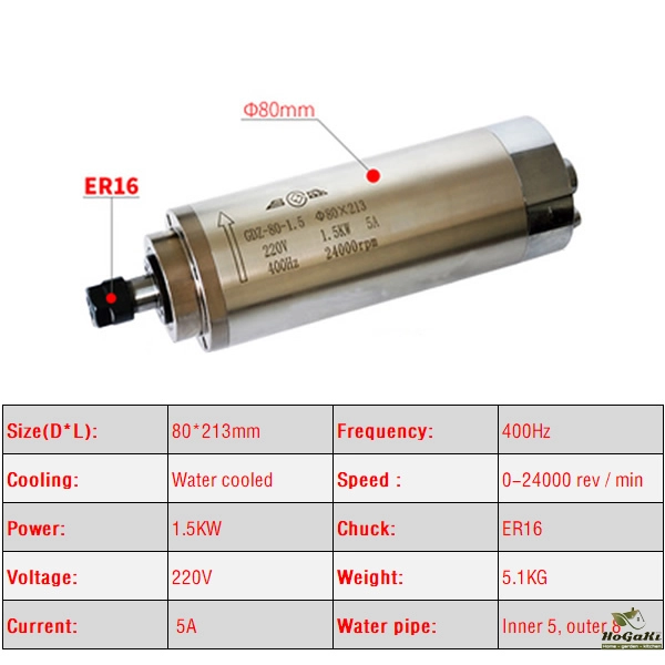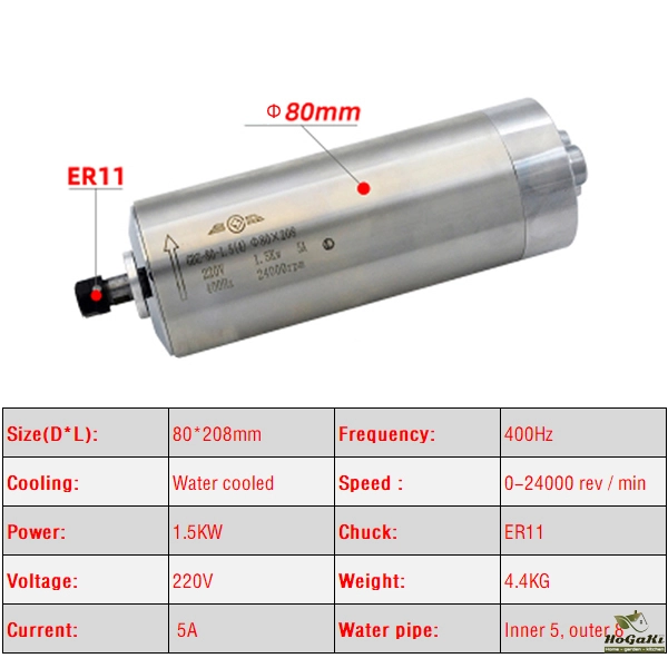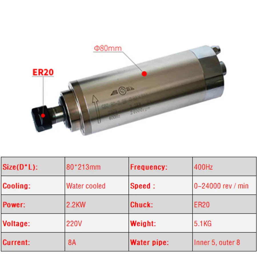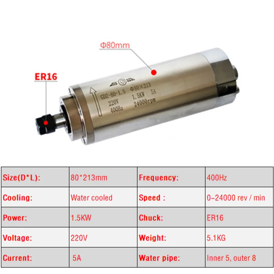 1. Spindle Motor Power: 1.5KW / 2.2KW