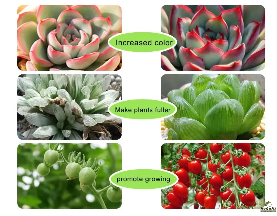 -The color is accelerating leaf ,plants,flowers,vegetables growing better,promoting flowering;