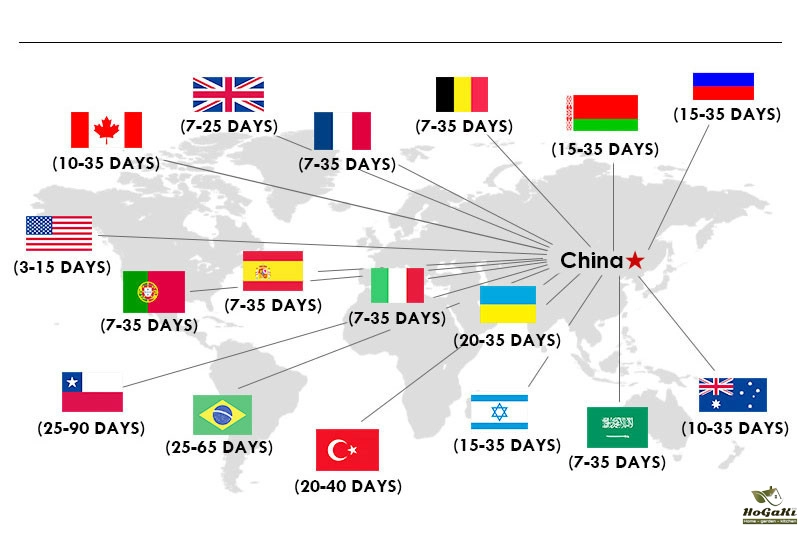 If you can't find the estimated delivery time on the product detail page, you can look at the following table for reference.