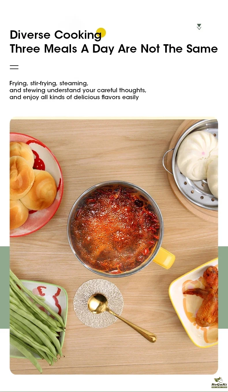 1.8L Multifunctional Cooker Hot Pot Multifunctional Student Dormitory Electric Electric Cooking Noodles Home Pot Stainless Steel
