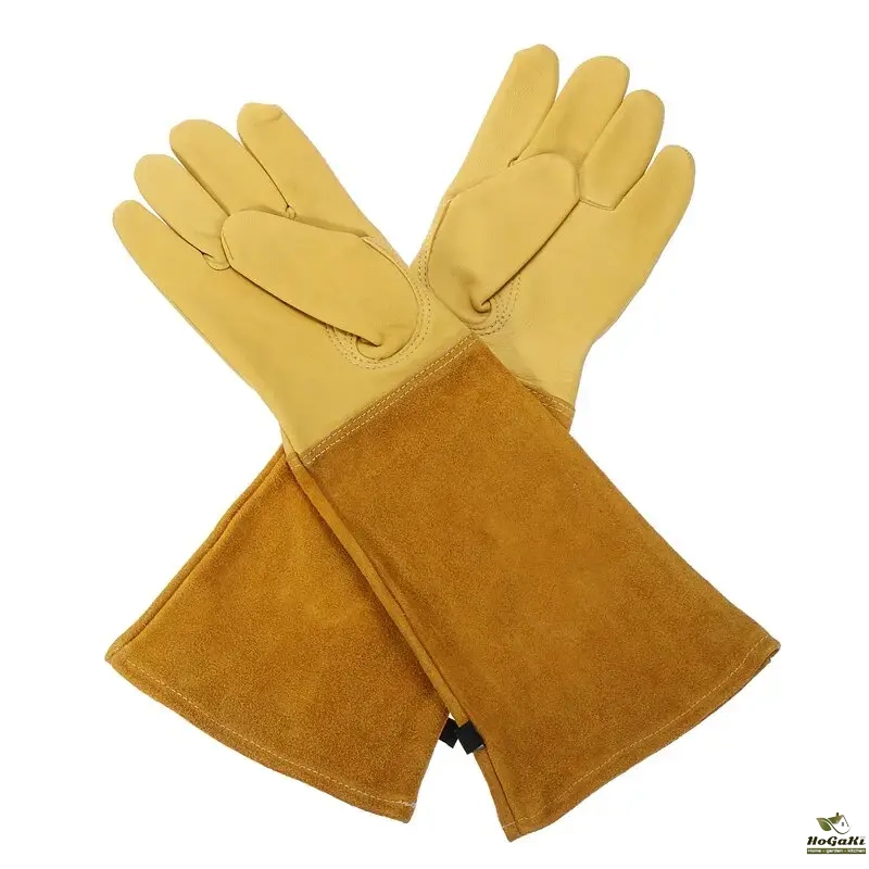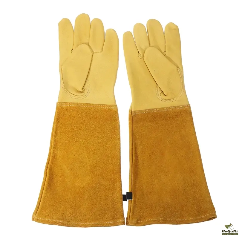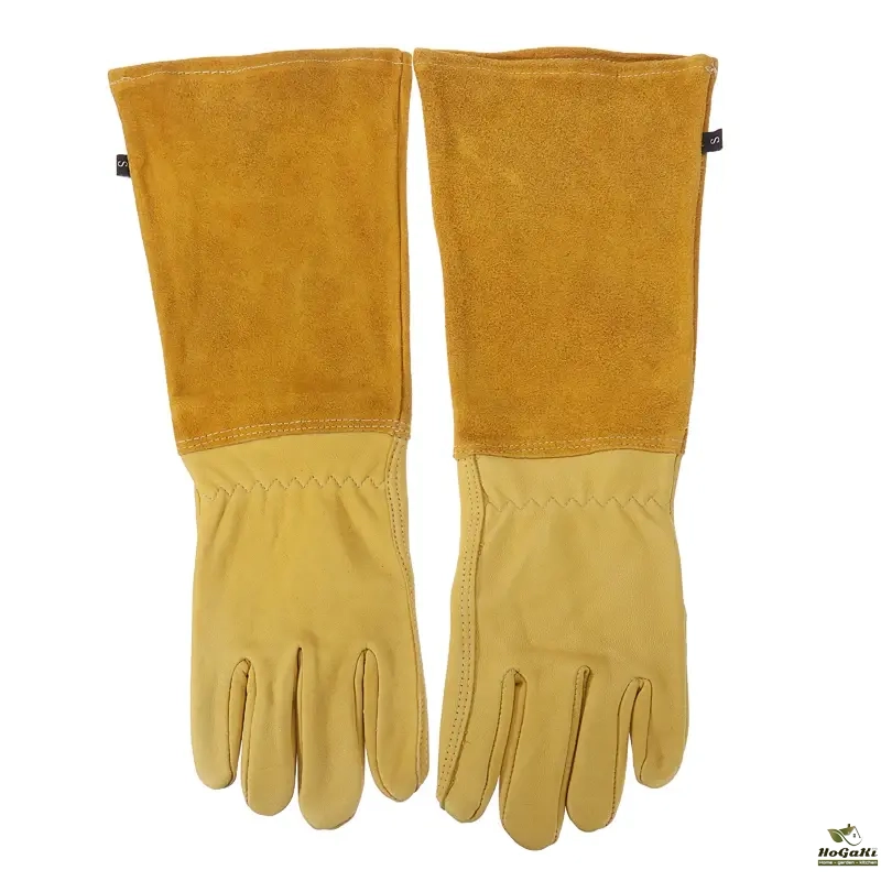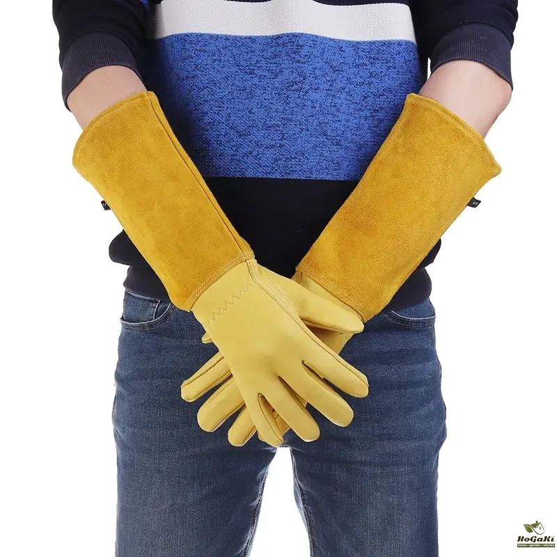 [Full Protection Leather Garden Gloves]: Elbow-length gauntlet will offer protection all the way until your elbow. Extended cowhide leather cuff protects forearms from cuts and scratches, long pruning gloves allowing you free from your roses painlessly.