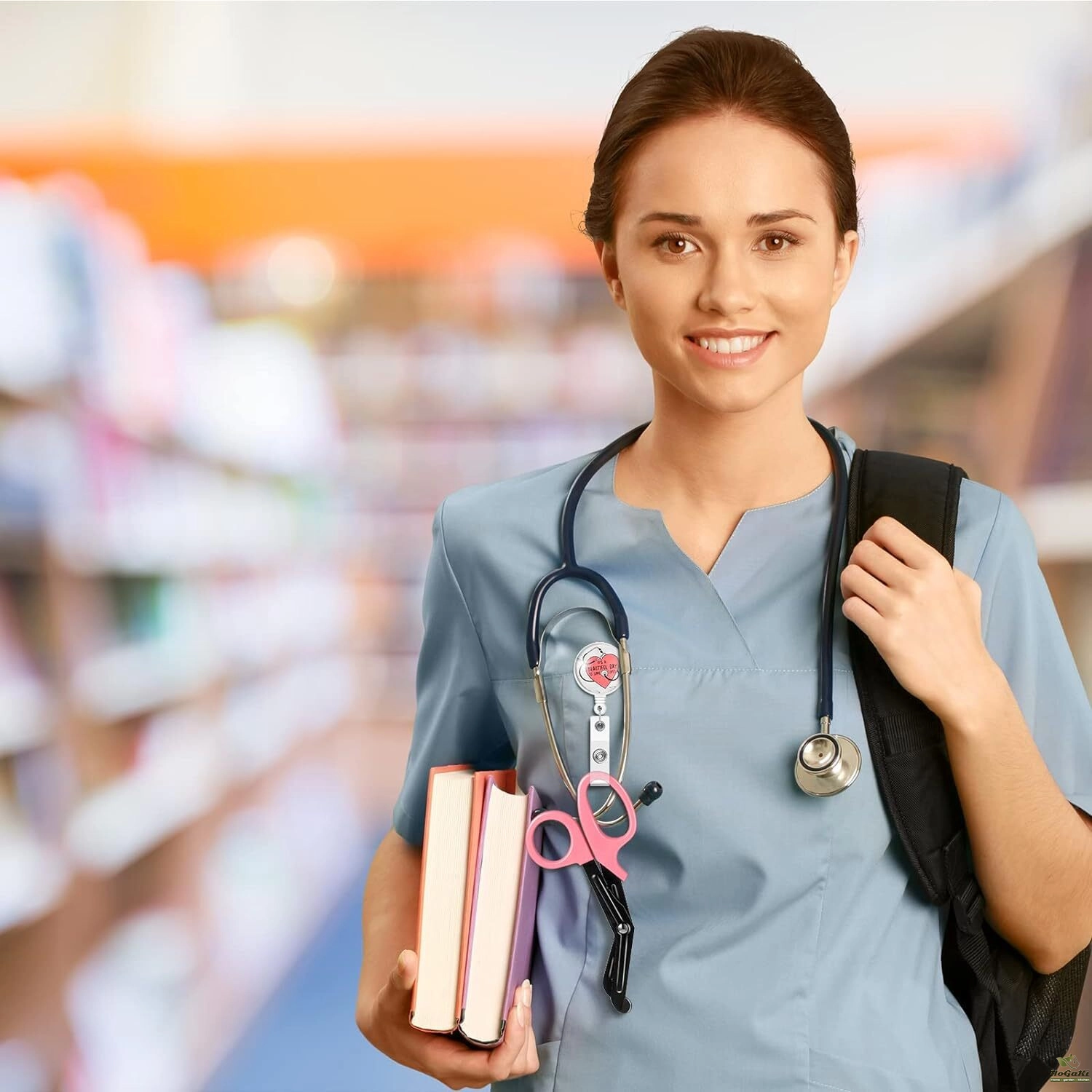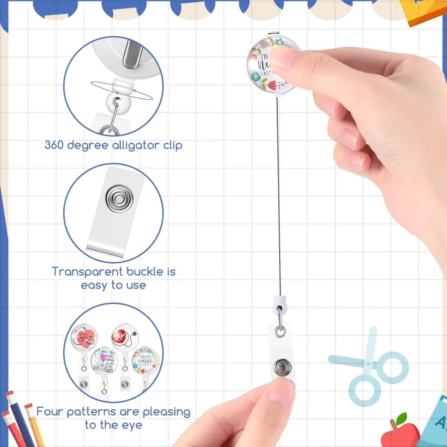 Retractable badge clip and shears for nurses are small and lightweight, easy to use and carry around, which can be stored in your pocket, drawer and other place.