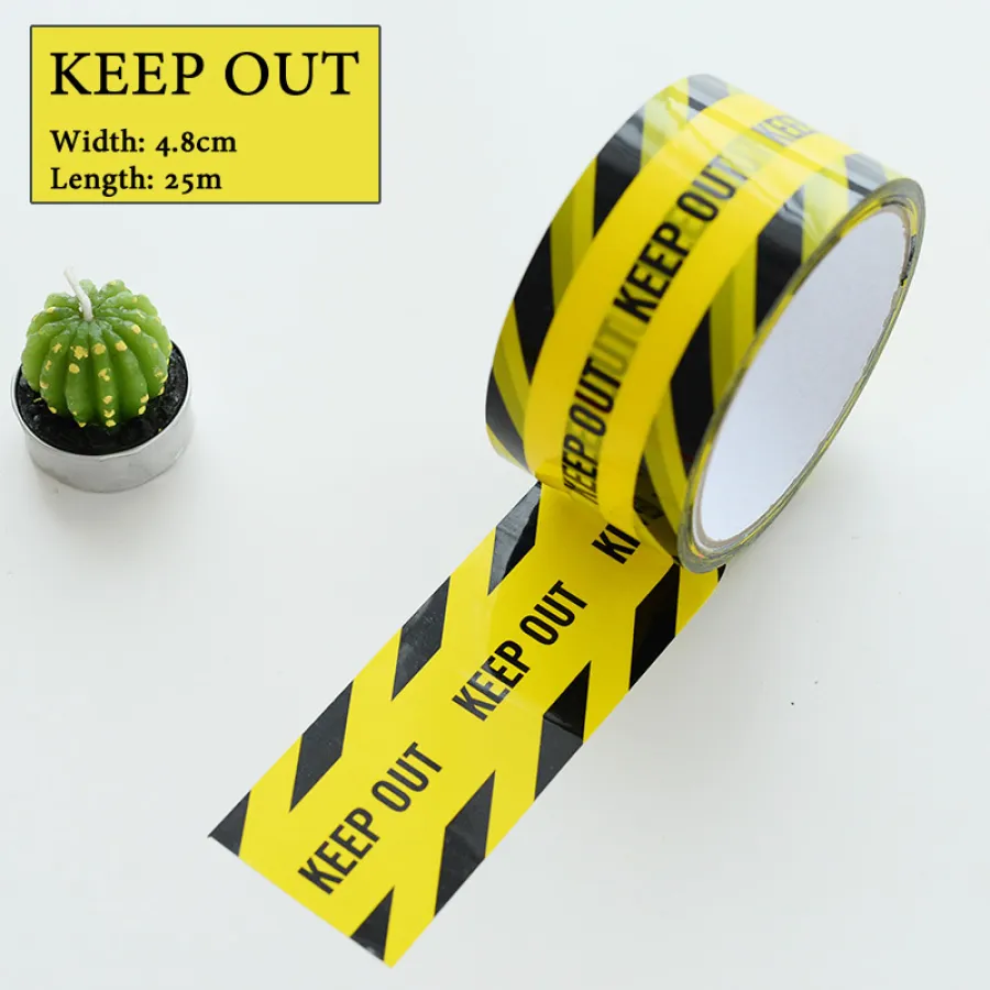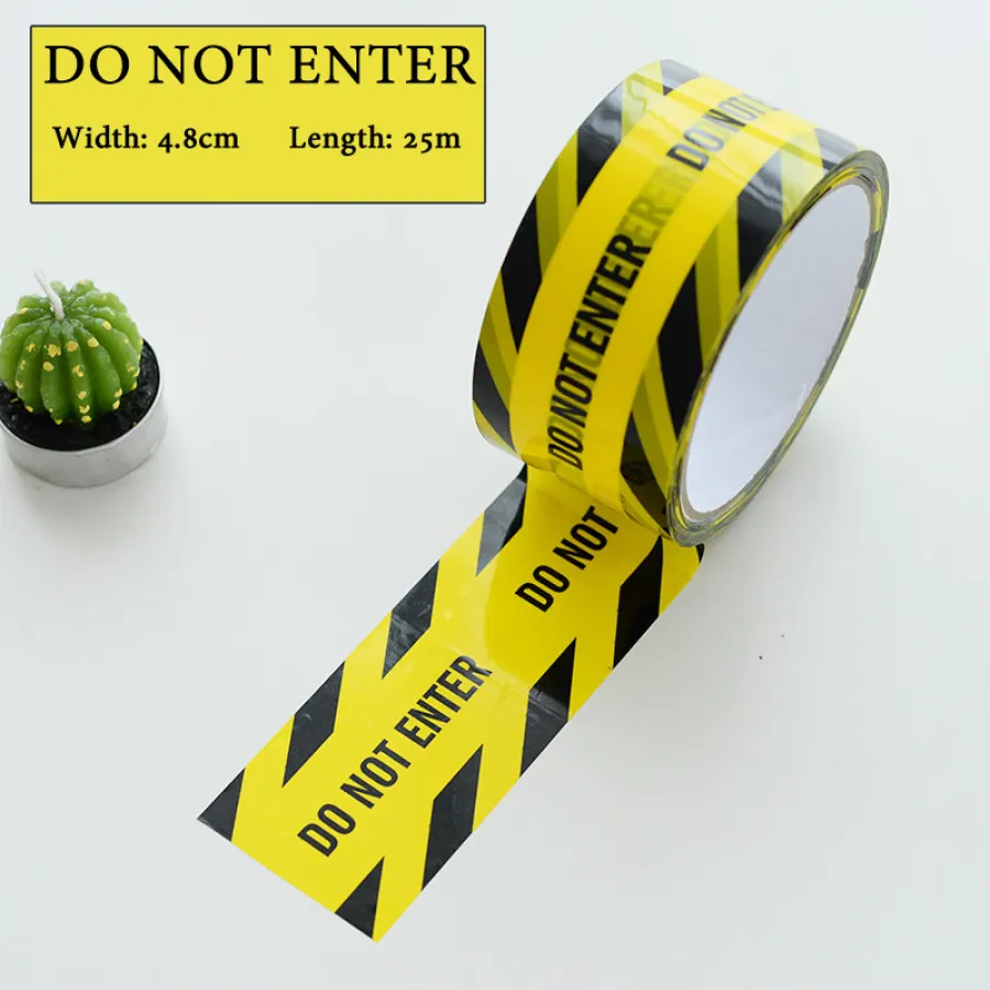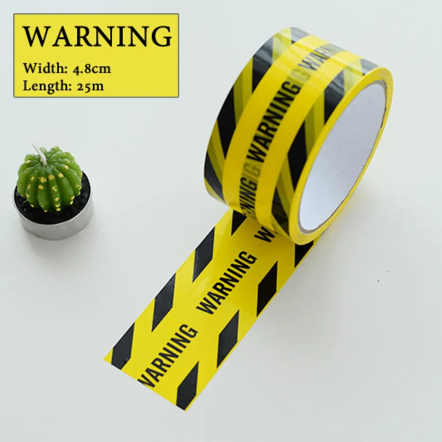 1/Roll 48mmx25m Warning Tapes Yellow Black Caution Keep Out Sign Barrier Safety Reminder Sticker For Warehouse Factory School