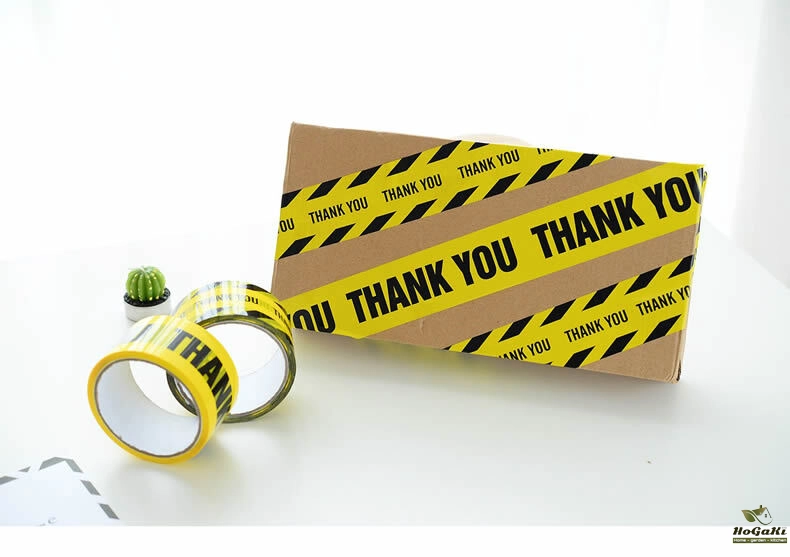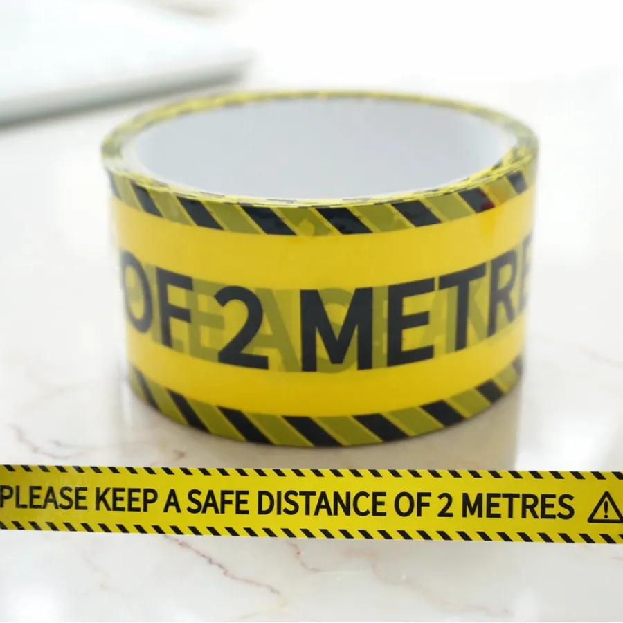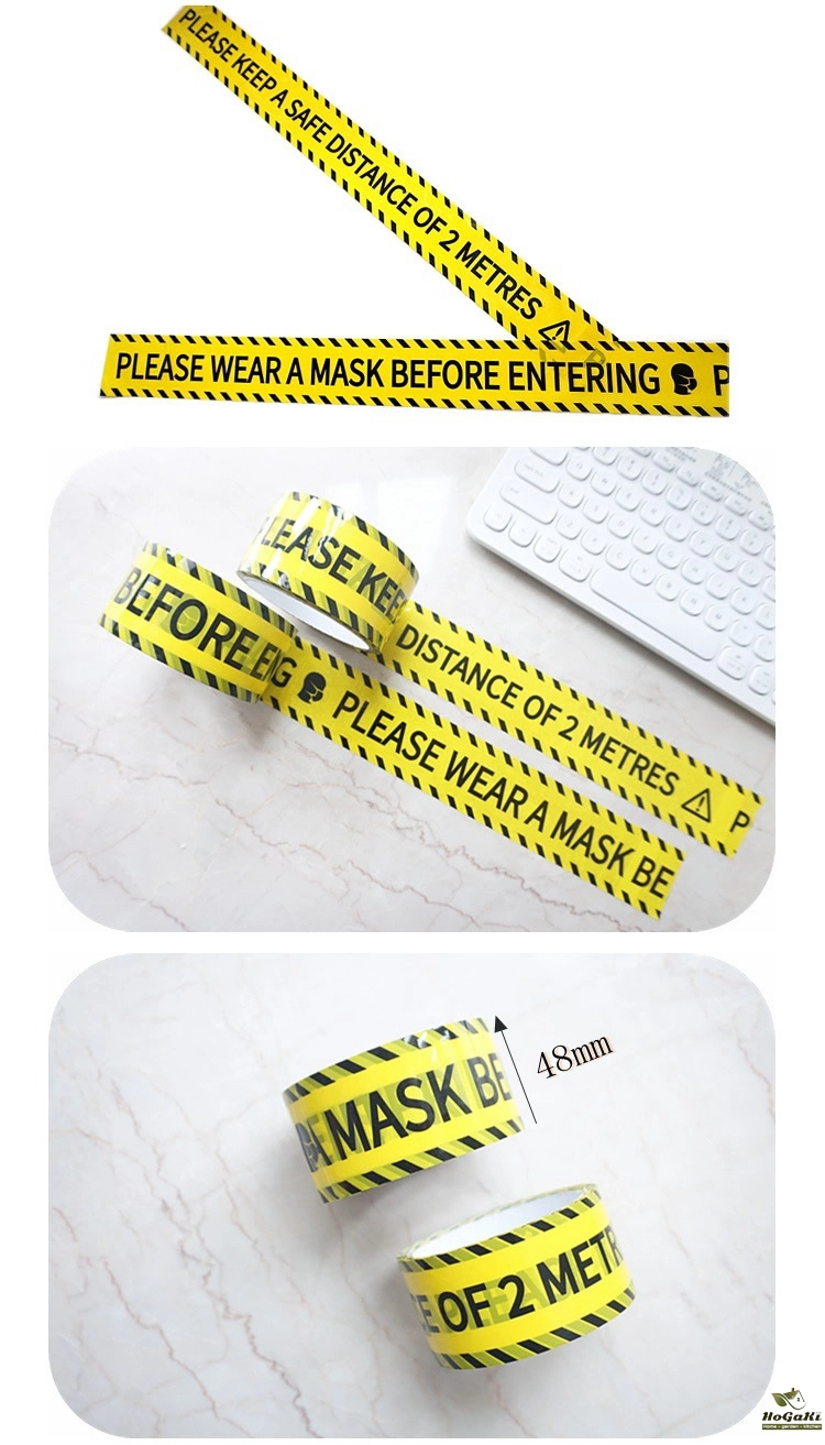It is made of high quality opp and adhesive. With English words remind with yellow and black words.