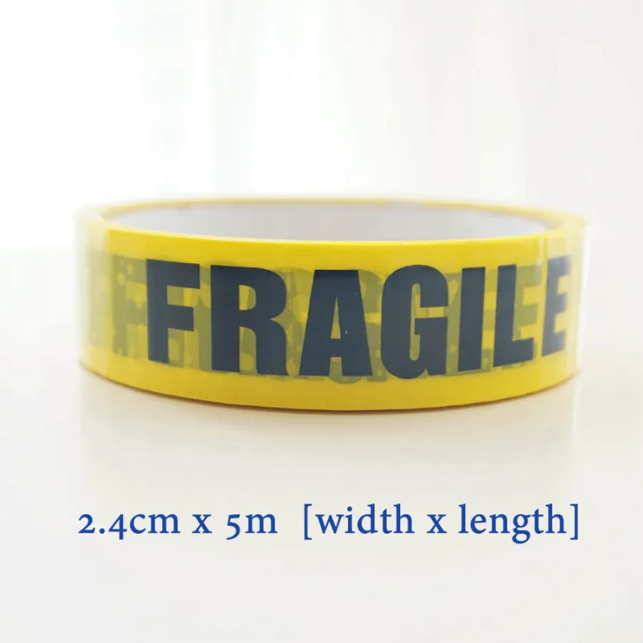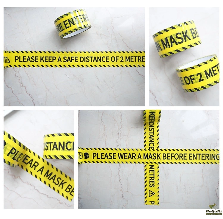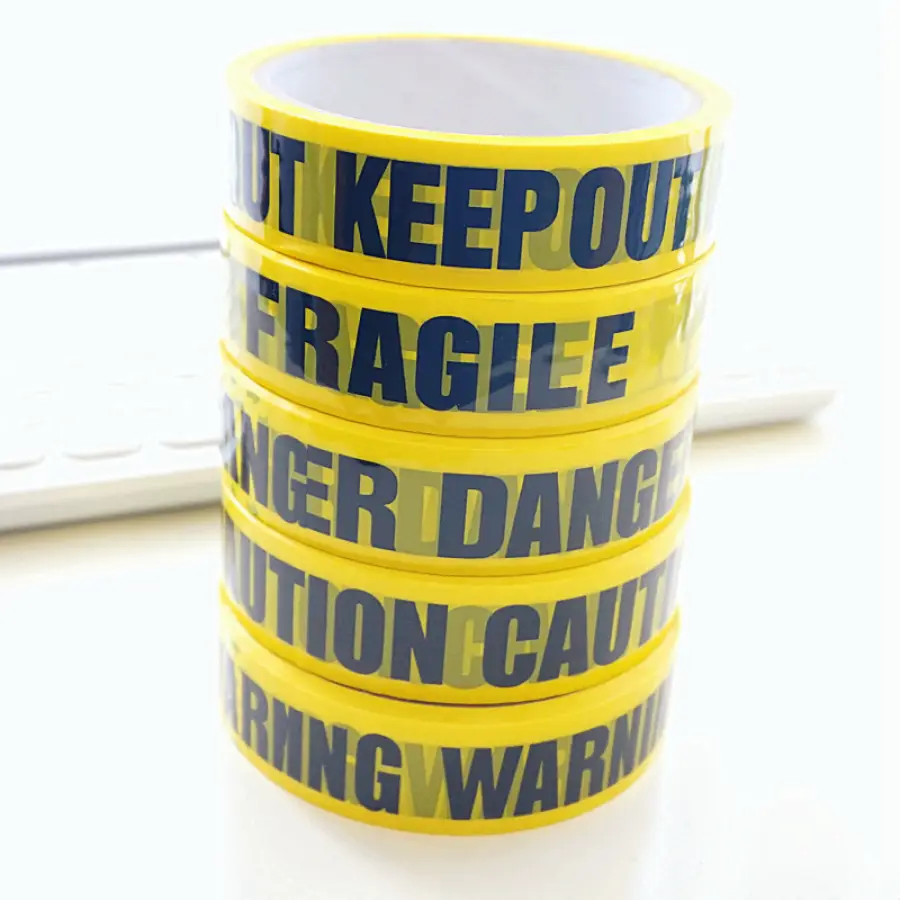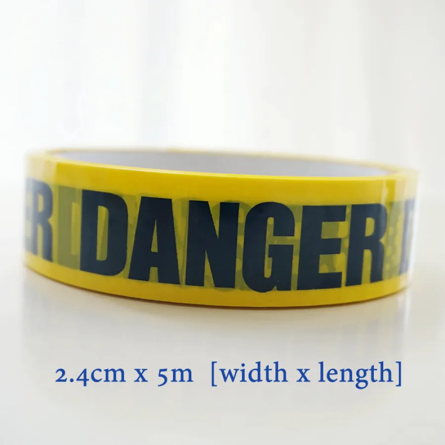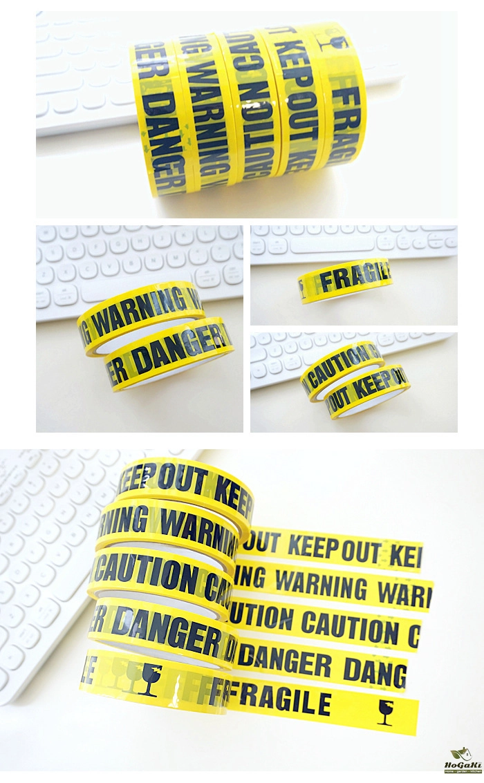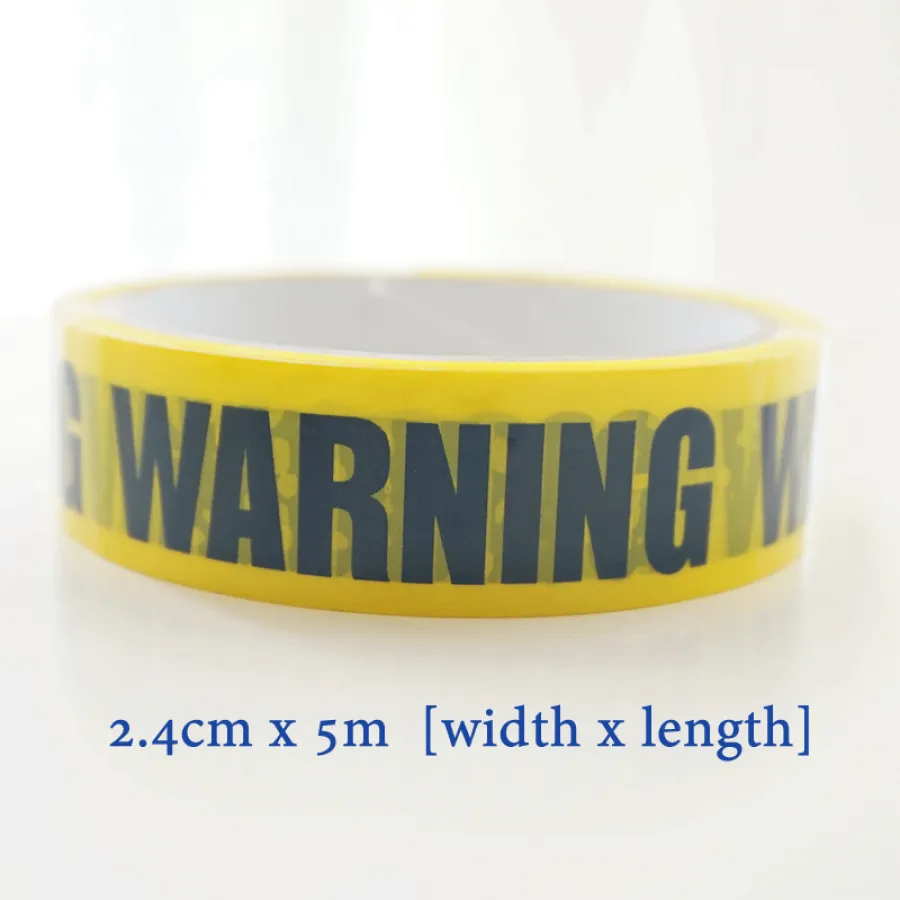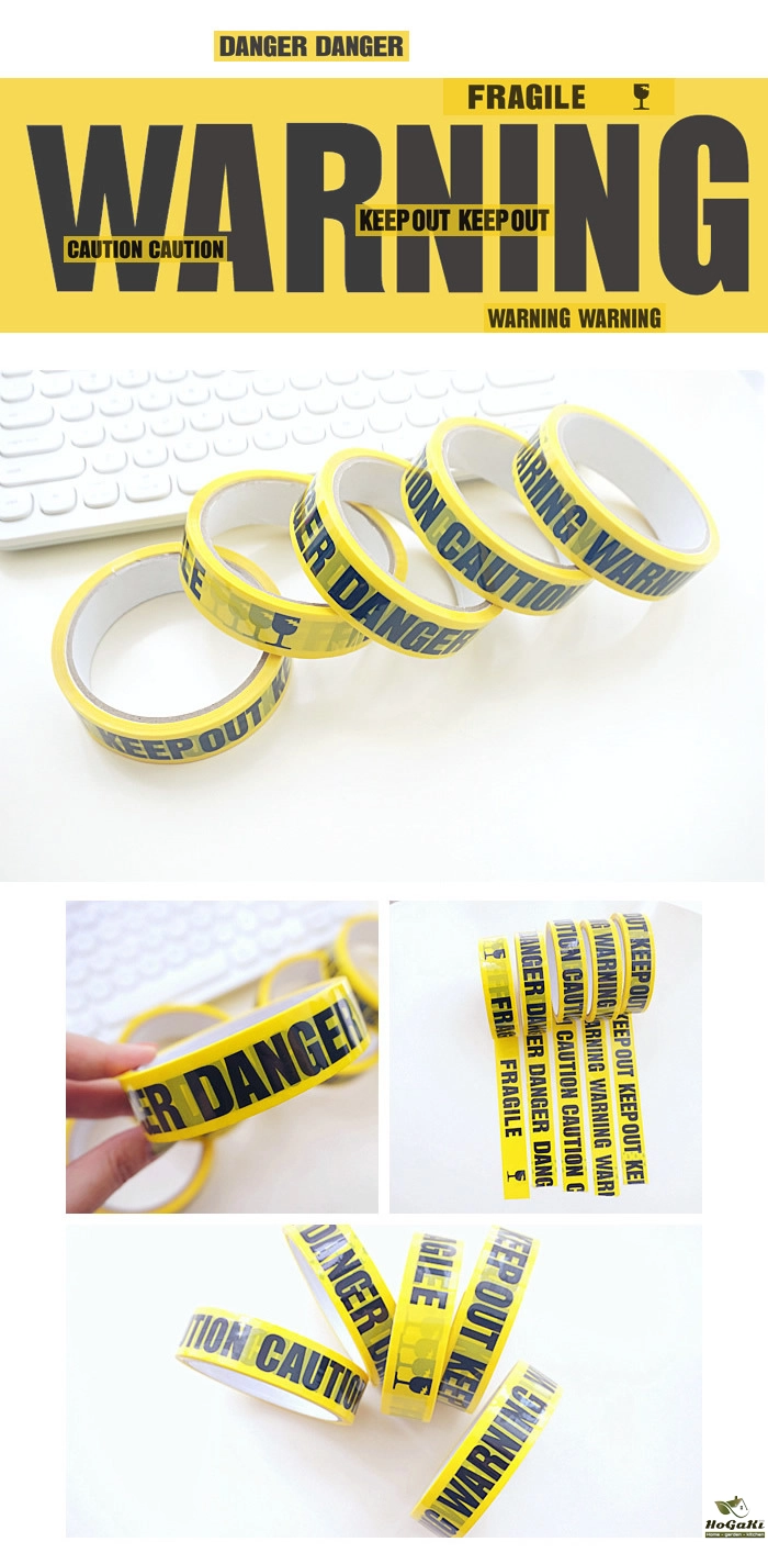 It is made of high quality opp and adhesive. With English words remind with yellow and black words.