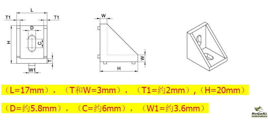 Rigid connection, used to connect pieces of 20mm aluminum extrusion at a 90 degree angle.