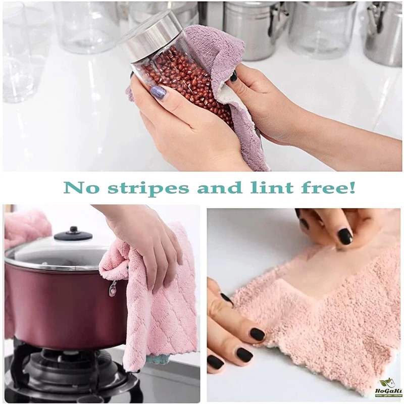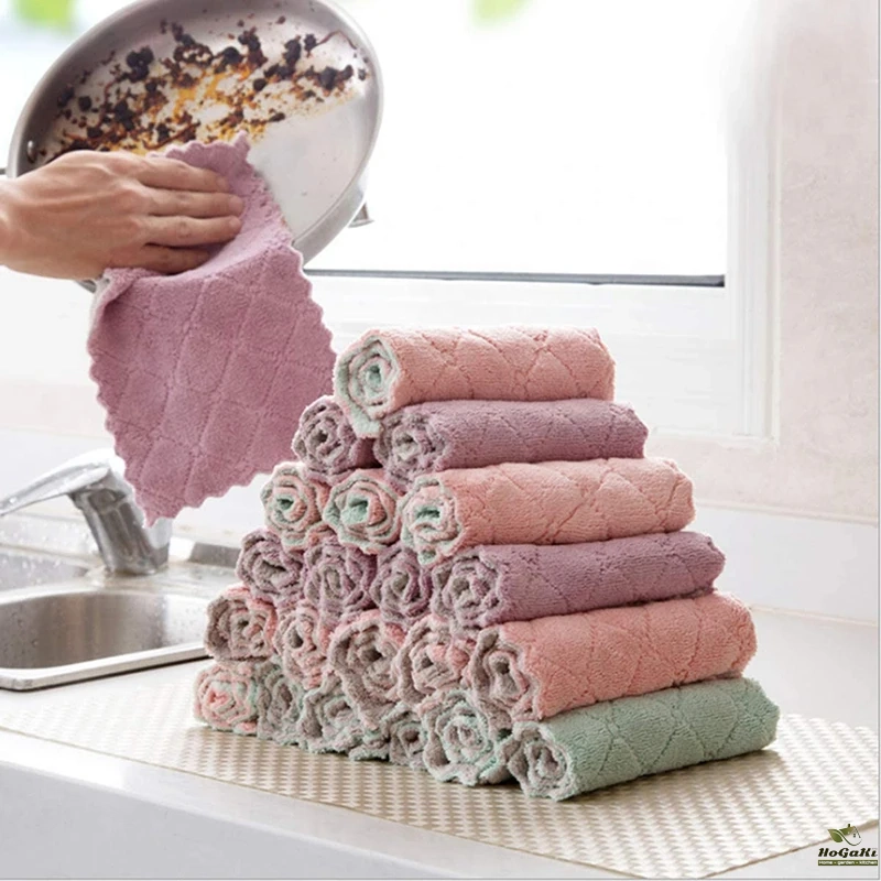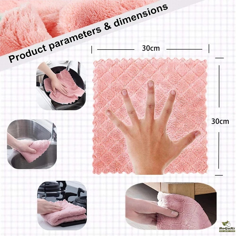 The dishclothes is soft, flexible and lightweight, not too thick and not too thin, easy to wash, dry, clean, allowing air flow for quick drying, odorless.