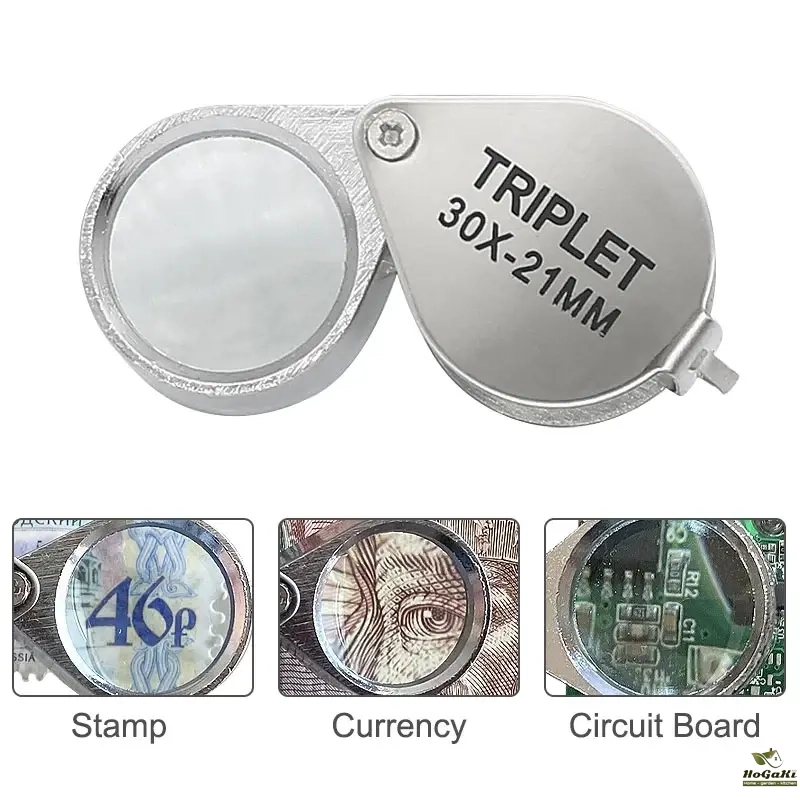 30X Pocket Loupe Magnifier Mini Jewelry Magnifying Glass Foldable Diamond Lupa Triplet Jewelers Eye Glass Tool Reading Magnifier