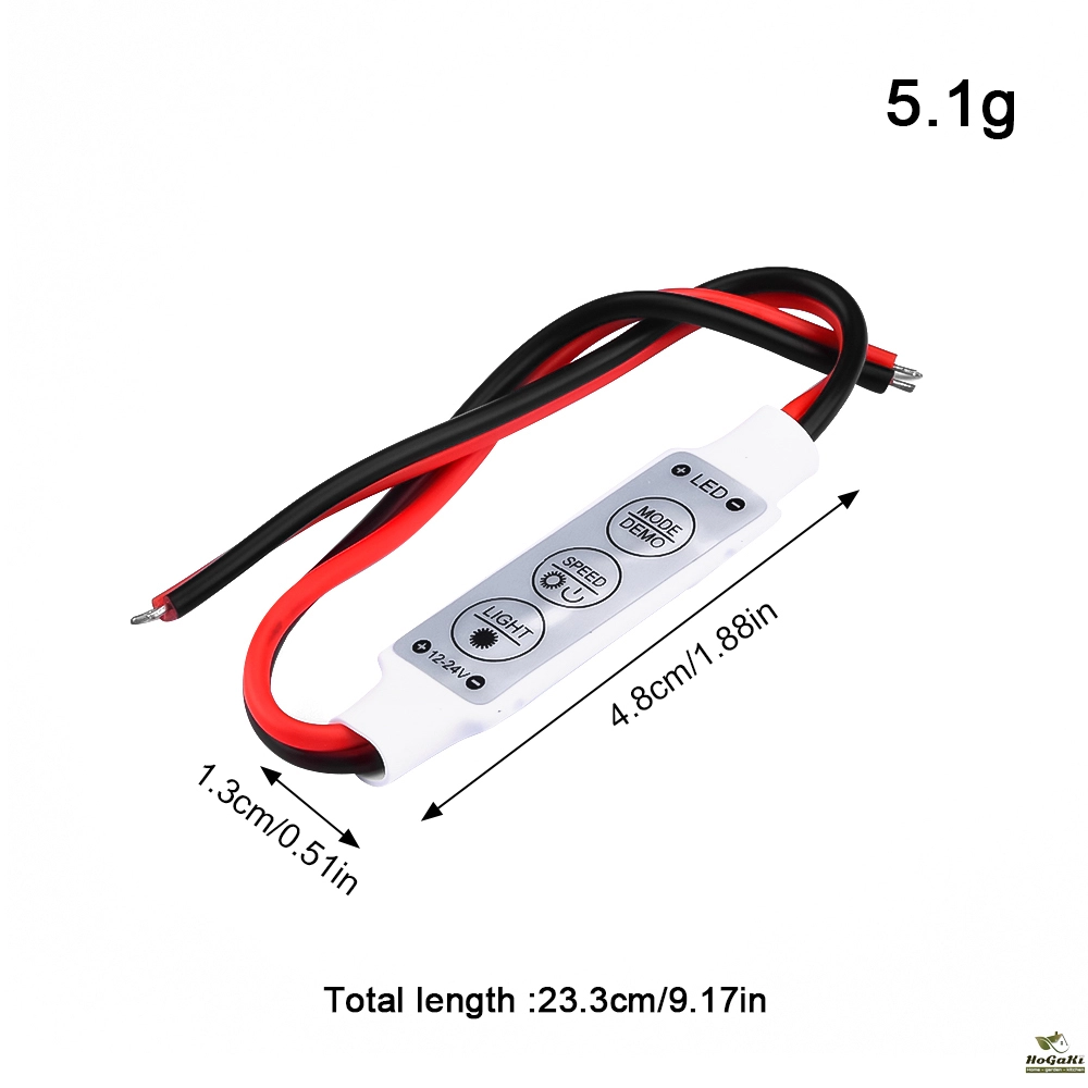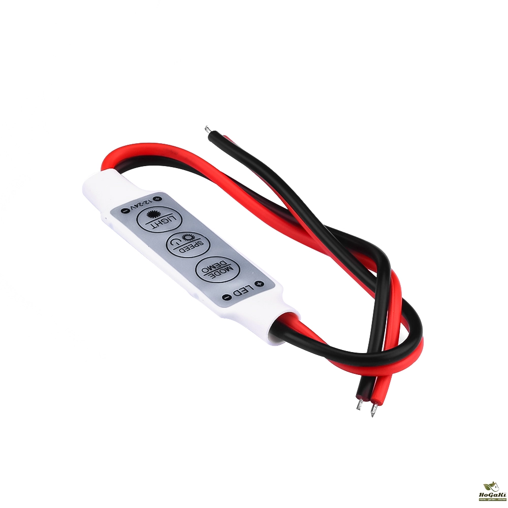 This is a new monochrome LED controller. This product has powerful function and small volume. It provides a variety of sepcial dynamic models and brings a new application of monochrome LED decoration. In addition, it can be used as an LED dimmer. You can easily press 3 buttons on its ultra-thin fuselage to change dynamic mode, speed and brightness. It also features auto memory function. It's the best companion for your LED light bar.