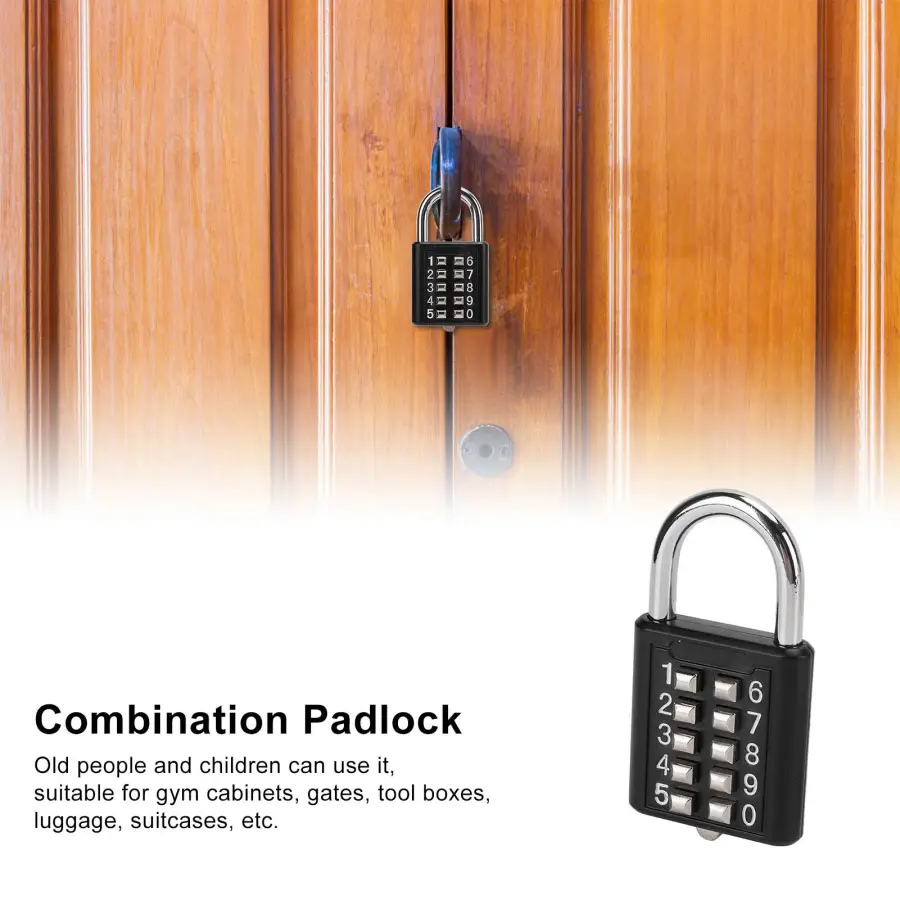 Security Padlock 10 Digits Push Button Combination Outdoor Waterproof Padlock for Gym Cabinet Gate Toolbox Suitcase