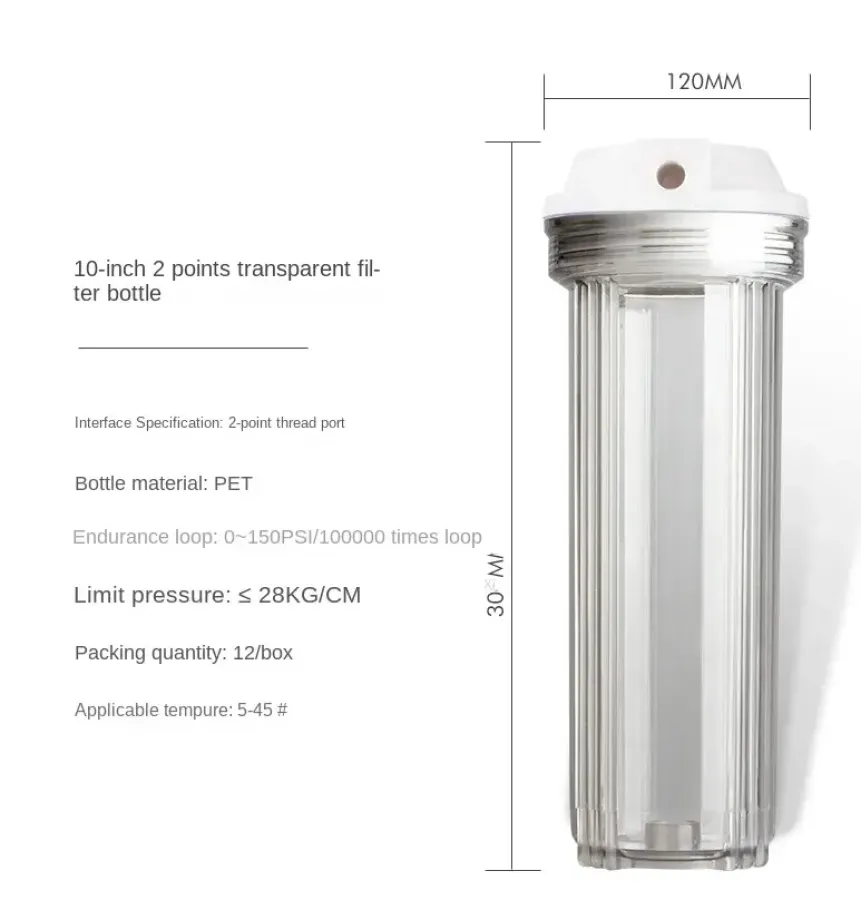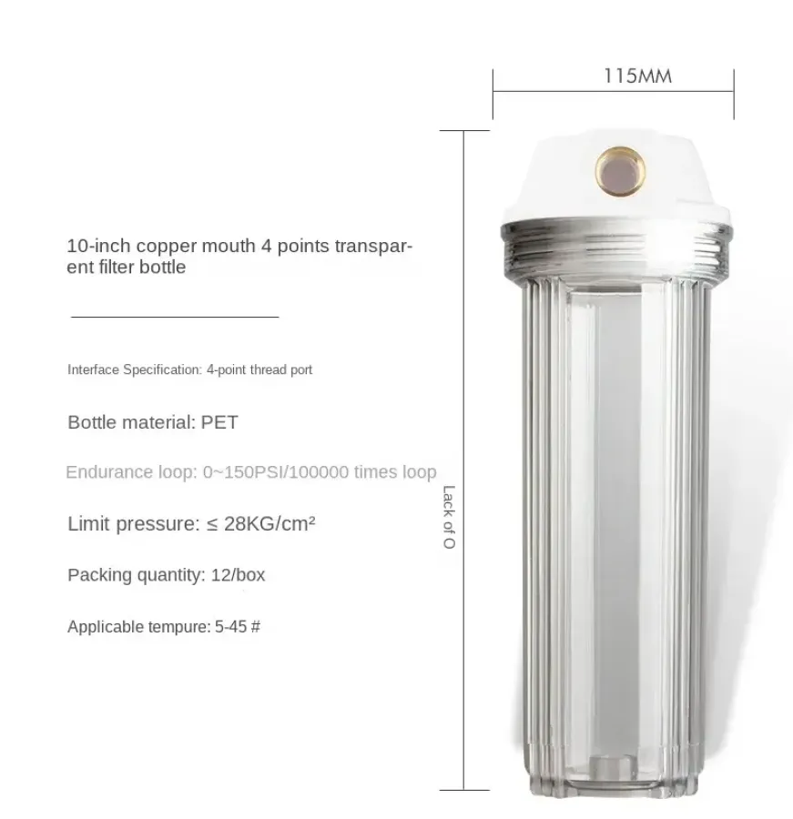 The filter housing is made of high quality PP and AS and PET in conformity with FDA specifications. Gum O-ing can avoid leakage. Thicker housing and rib design can withstand much pressure. It can be used in food industry, industries, RO system, lab, water station.