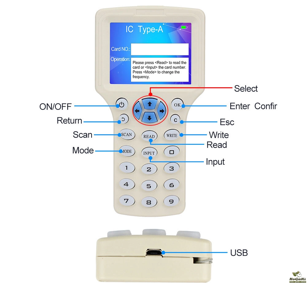 Support read write frequency: 125KHz, 250KHz, 375KHz, 500KHz, 625khz, 750kHz, 875KHz, 1000KHZ, 13.56MHz (ISO1443A/B), support HID Prox cards.