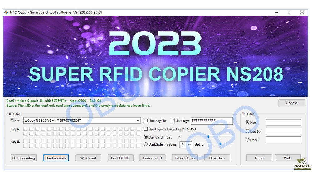 Support cards write: T5577, EM4305, HID 1386/1326/1346, UID cards.