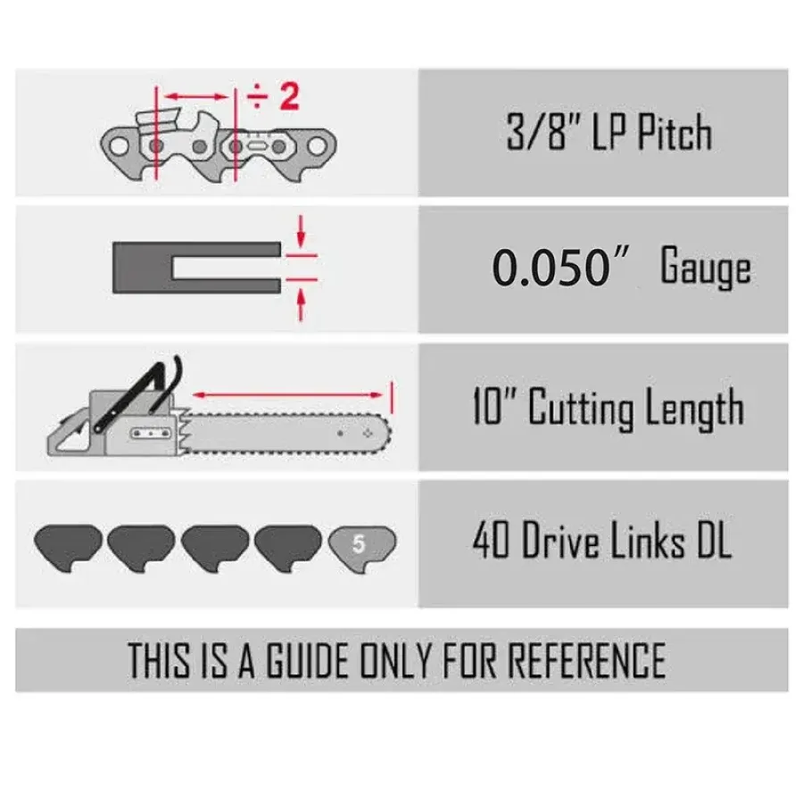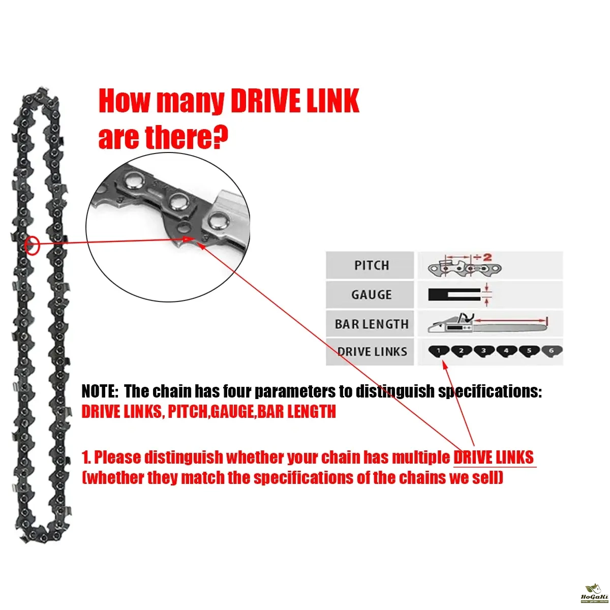 And this chain length size is not the only parameter to measure whether the chain is suitable for your chainsaw, there are several more important parameters that need to be matched, such as: pitch, chain gauge, transmission chain link, tool, these 4 parameters are the decision Reasons for whether it is right for your chainsaw.