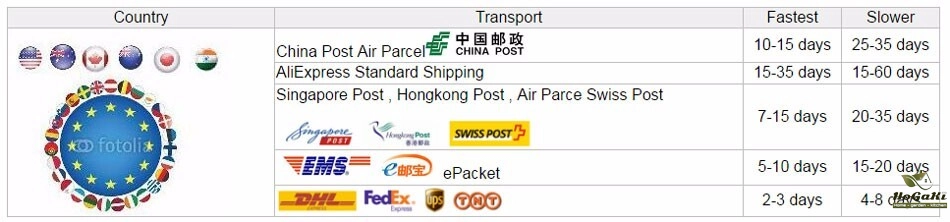 Packages from our warehouse in China will be shipped by ePacket or EMS depending on the weight and size of the product. Packages shipped from our US warehouse are shipped through USPS.