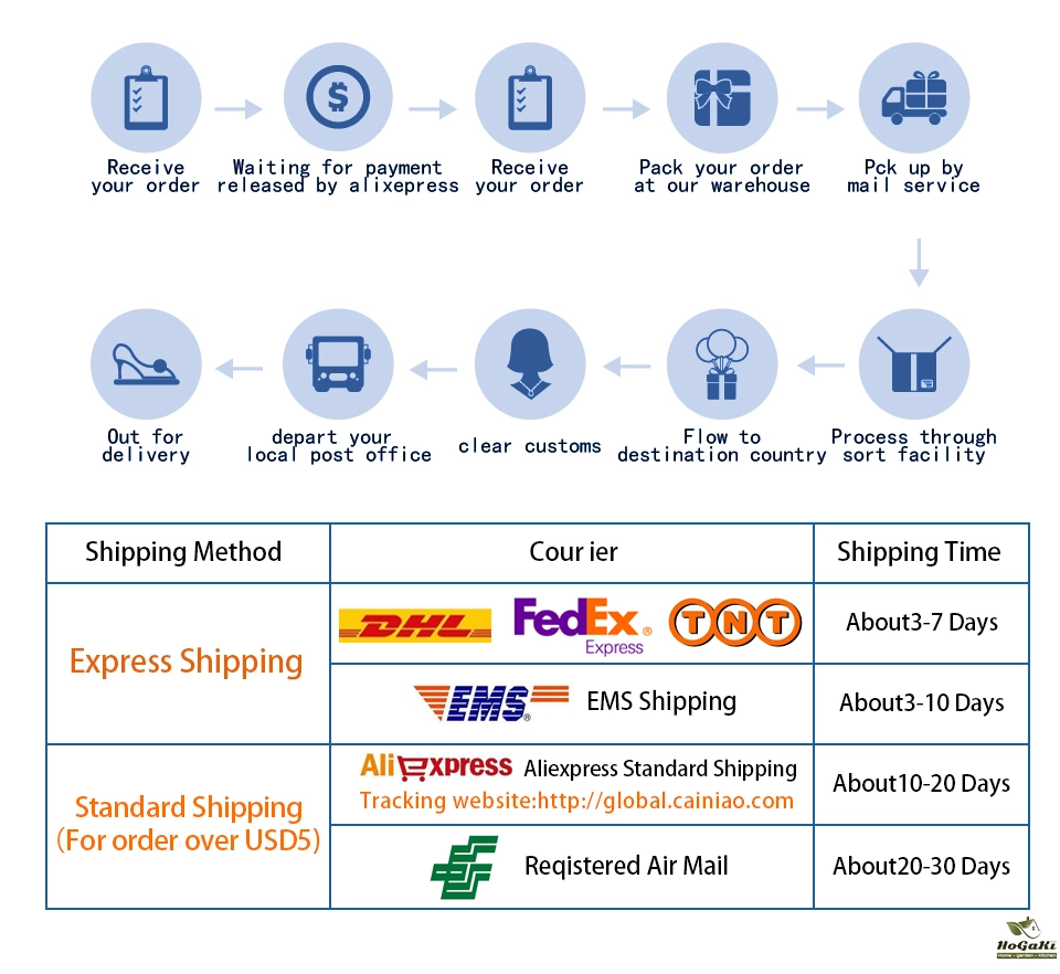 Packages from our warehouse in China will be shipped by ePacket or EMS depending on the weight and size of the product. Packages shipped from our US warehouse are shipped through USPS.