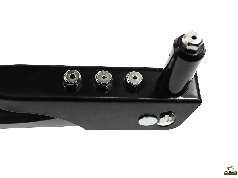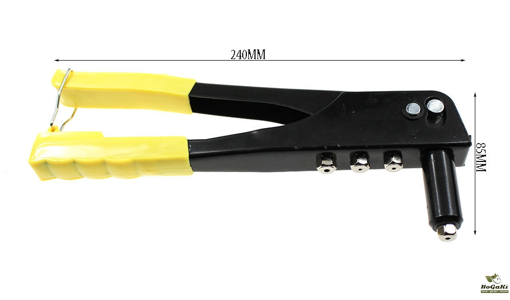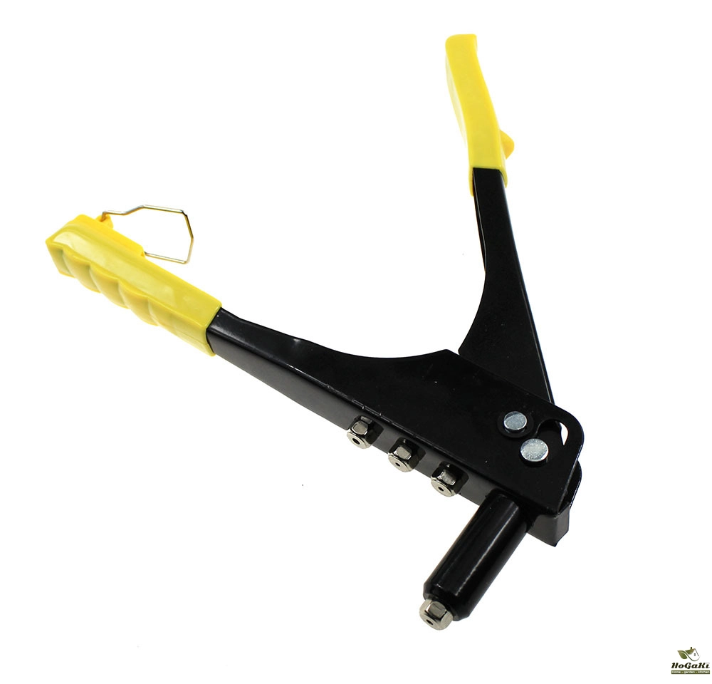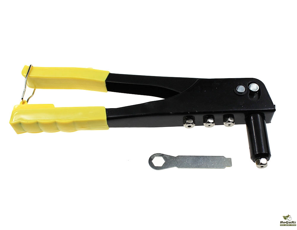 GOOD QUALITY ONE WAY HAND RIVETER GREAT FOR REPAIRING A/C DUCTS, SHEET METAL, WINDOWS ECT. INCLUDES 4 DIFFERENT NOSE PIECES FOR PULLING 3/32" 1/8" 5/32" AND 3/16" DIAMETER RIVITS
