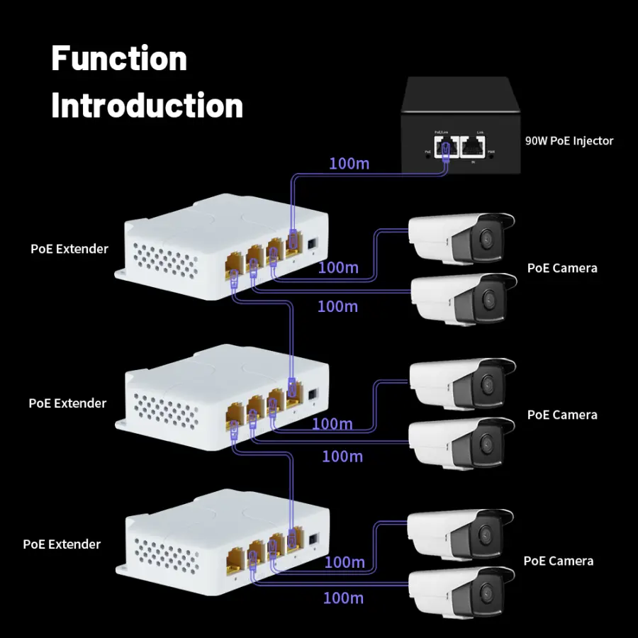 TelDaykemei 4 Port PoE Extender poe repeater for IP Port Transmission Extender for POE Switch NVR IP Camera