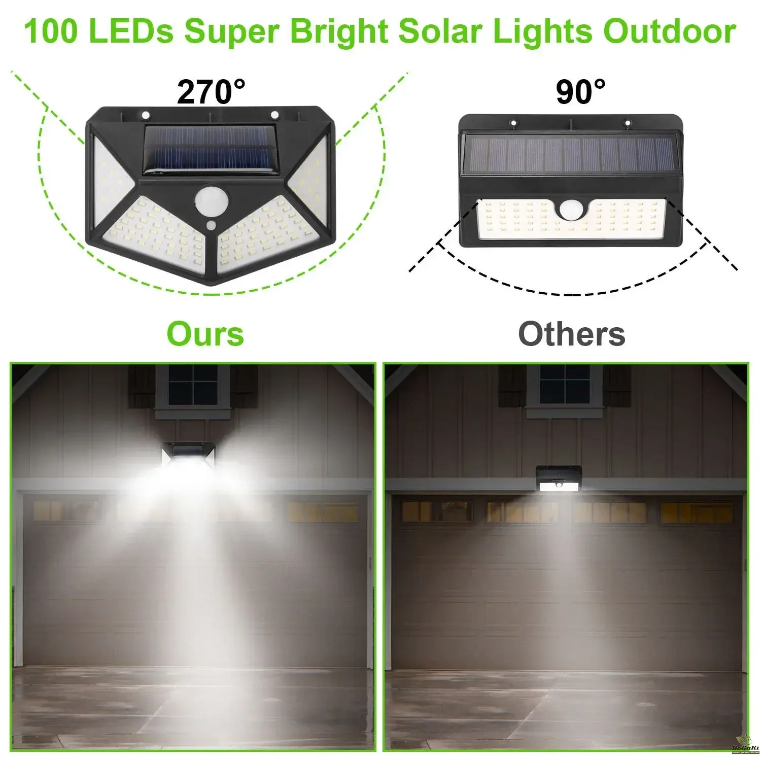 1.【More Brightness with 100 LEDs 】Our outdoor solar motion sensor lights with 100 LED sources that provide a brighter, more powerful lighting solution that will illuminate an area instantly and remain brighter for longer.