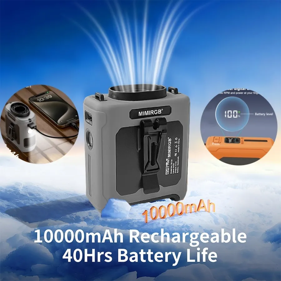 Portable Design: Compact and lightweight wearable fan clips onto your belt or bag for hands-free cooling.