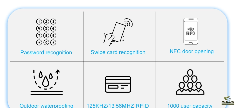 The new access control all-in-one machine has powerful functions, large capacity for 10,00 users, supports mobile phone NFC unlock, ID IC dual-frequency card swiping unlock, card + password combination card swipe, password to open the door, supports adding master card, one delete card, one add card