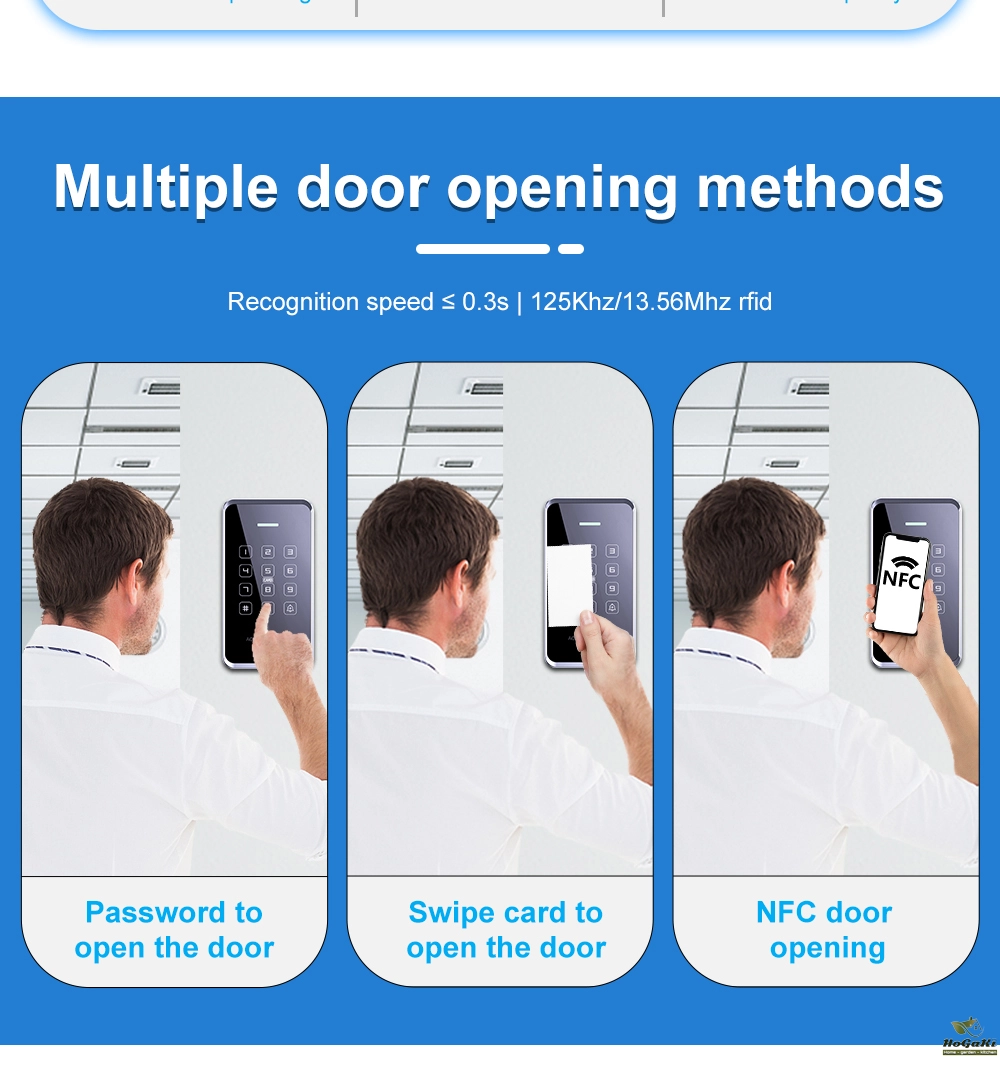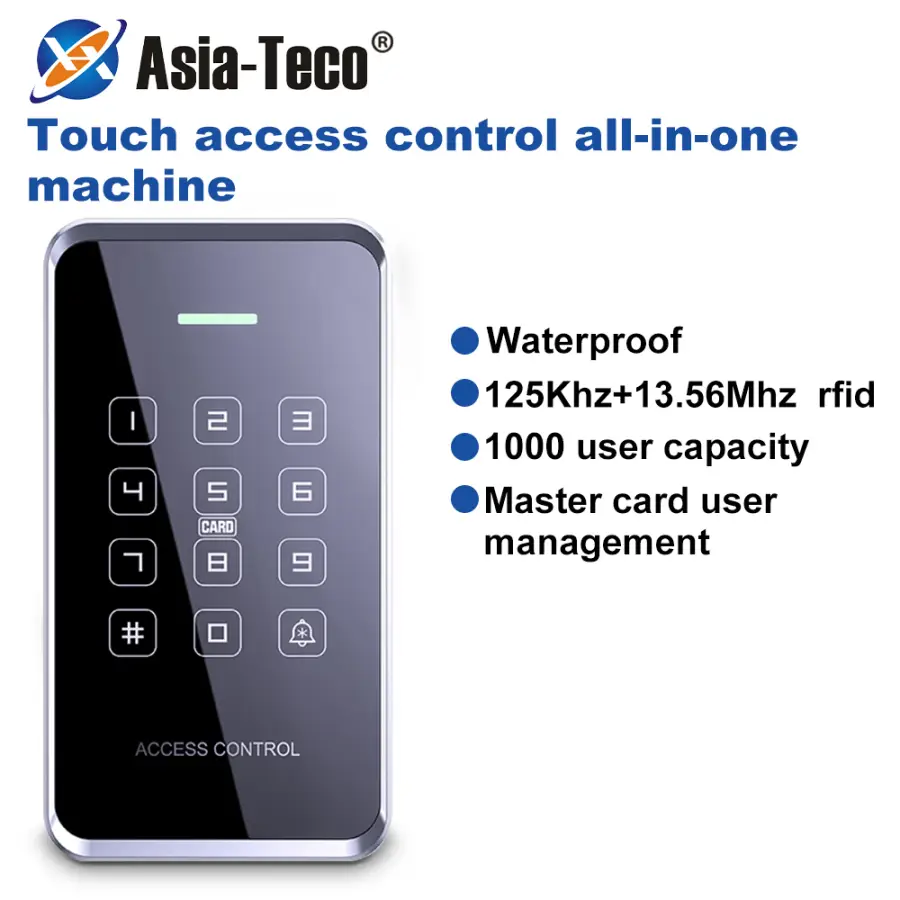1000Users NFC Access Control Keypad Waterproof Backlight Touch Screen Dual frequency RFID Proximity Card Password Unlock Reader