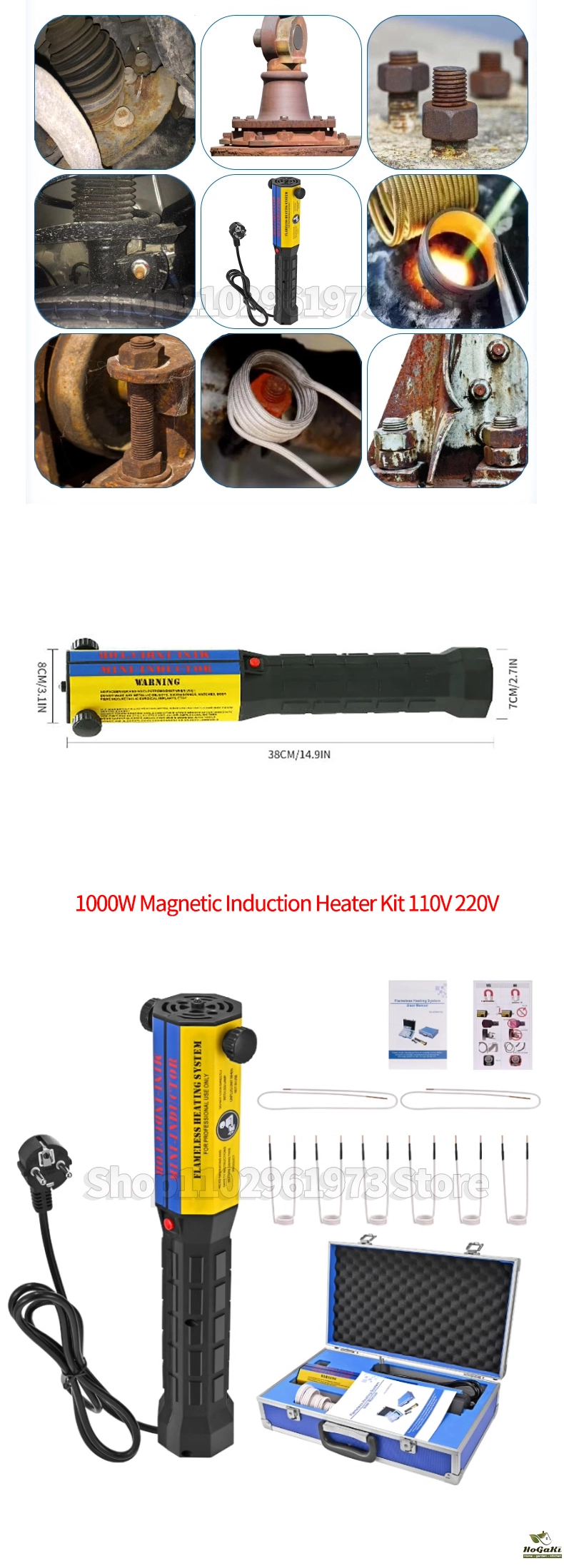 1000W Magnetic Induction Heater Portable Flameless Induction Heater 8 Coils Car Repair Tool Heater Kit 110v 220v 8 Coils Car Repair Tool