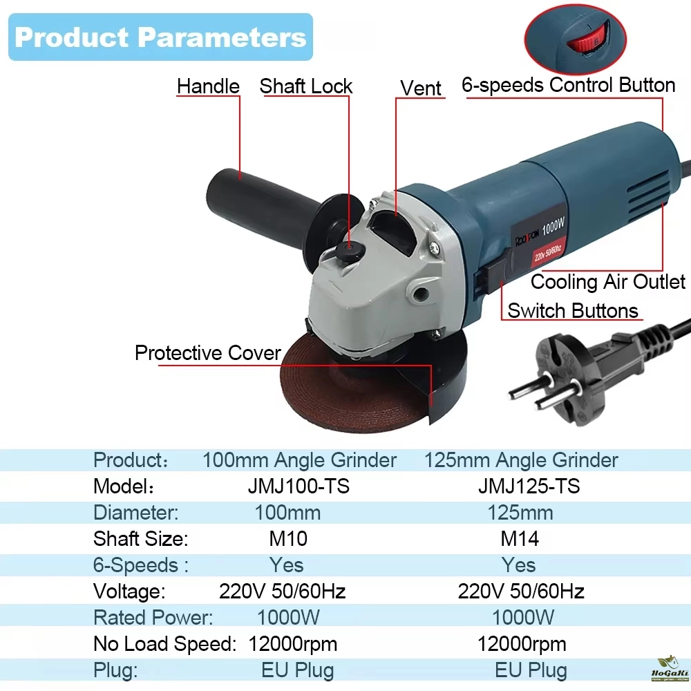 Electric Goddess DCG406 100/125MM Brushless Motor Electric Angle Grinder Metal/Wood Cutting Power Tool For Dewalt 20V Battery