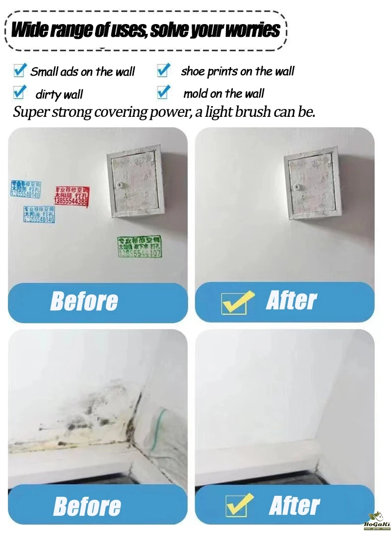 Strong Covering Power, Paint Without Leaving Any Marks: Wall advertisements, dirty shoe prints and tricky graffitis of children can be removed by a light brush and the wall are clean and tidy.