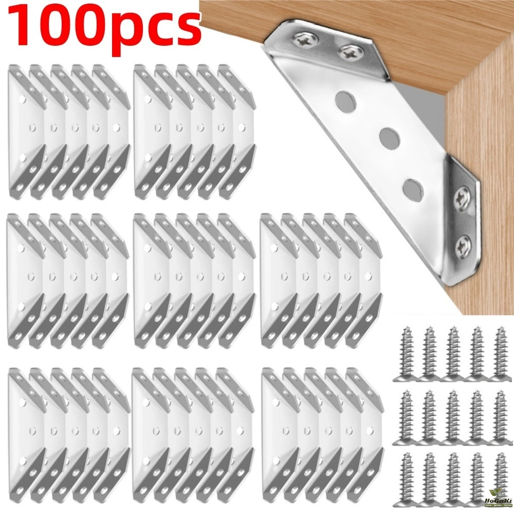 100PCS Corner Brackets Stainless Steel Furniture Angle Shelf Connector Cabinet Support Fixing Frame Corner Brace with Screw