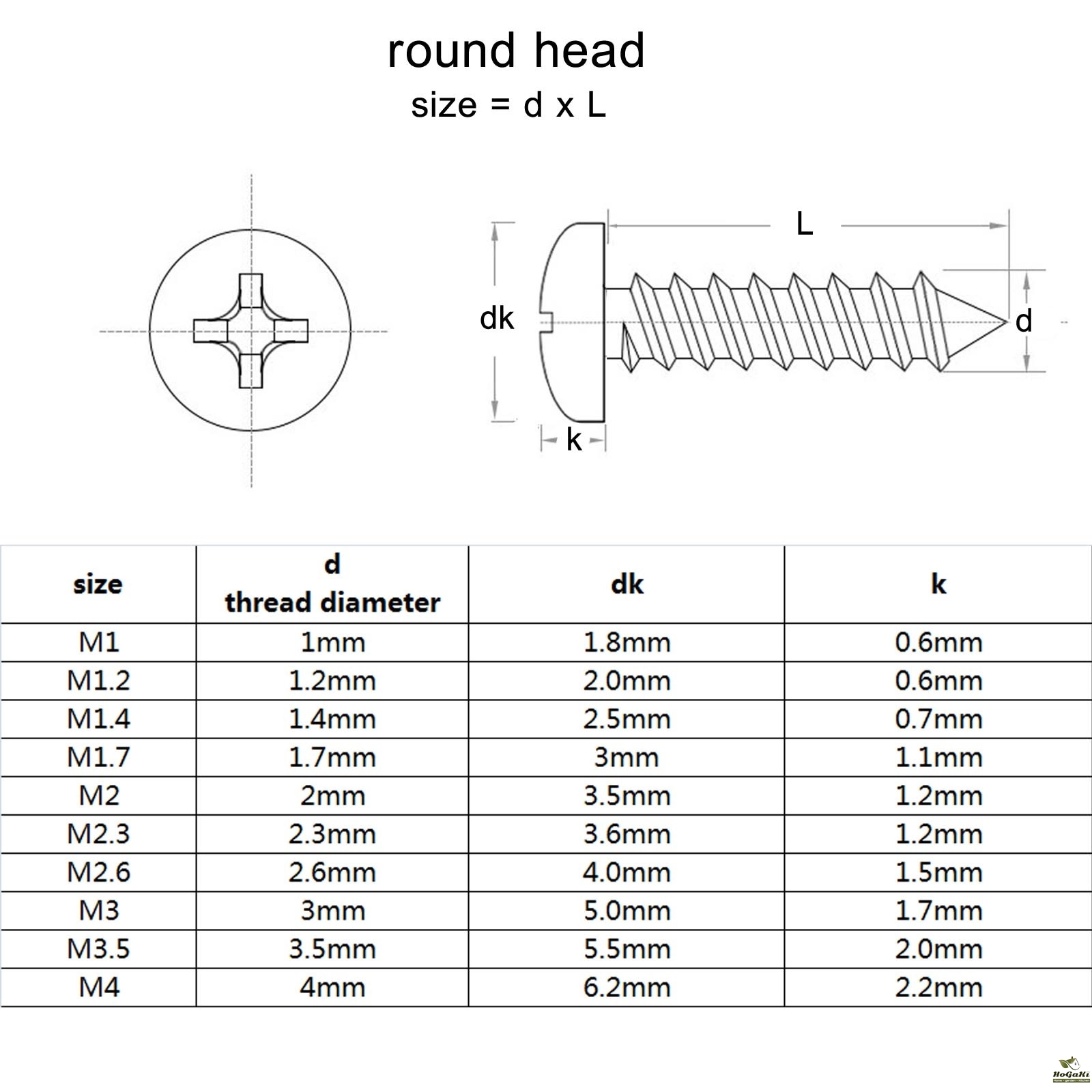 d(thread diameter: 1/1.2/1.4/1.7/2/2.3/2.6/3/3.5mm)xL(total length)