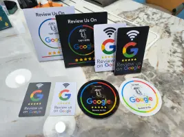 13.56Mhz programmable Google Review Card NFC station table NFC Google Reviews display bending card standing brand bracket