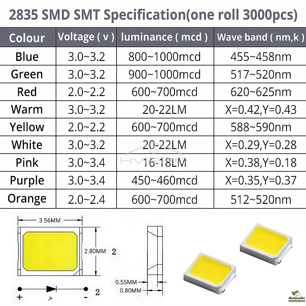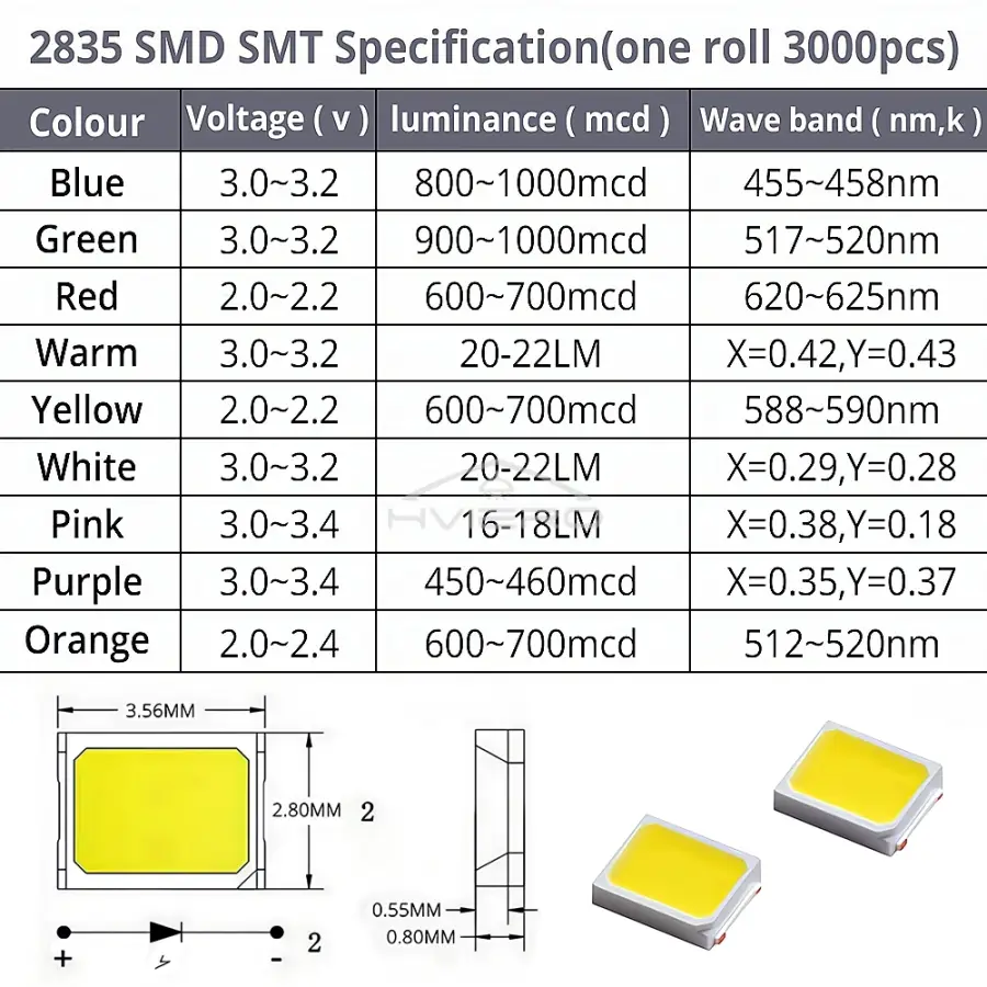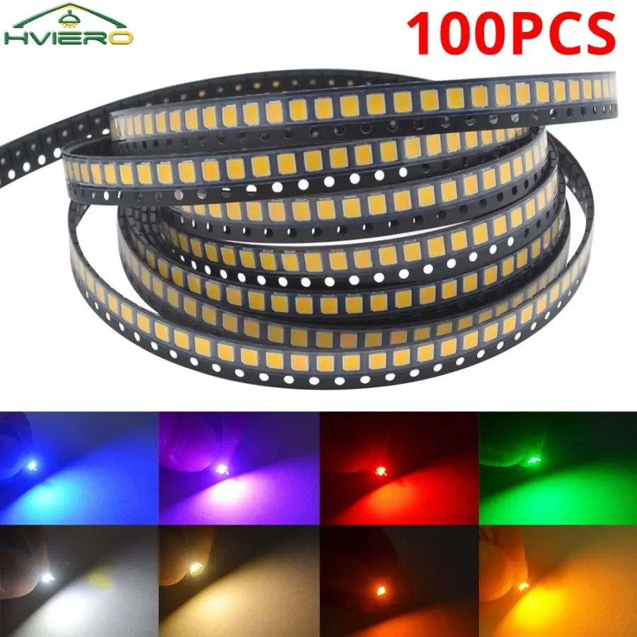 100Pcs 2835 Smd Led Pcb Chips White Red Green Blue Yellow Orange Pink Uv Purple Warm White Lighting