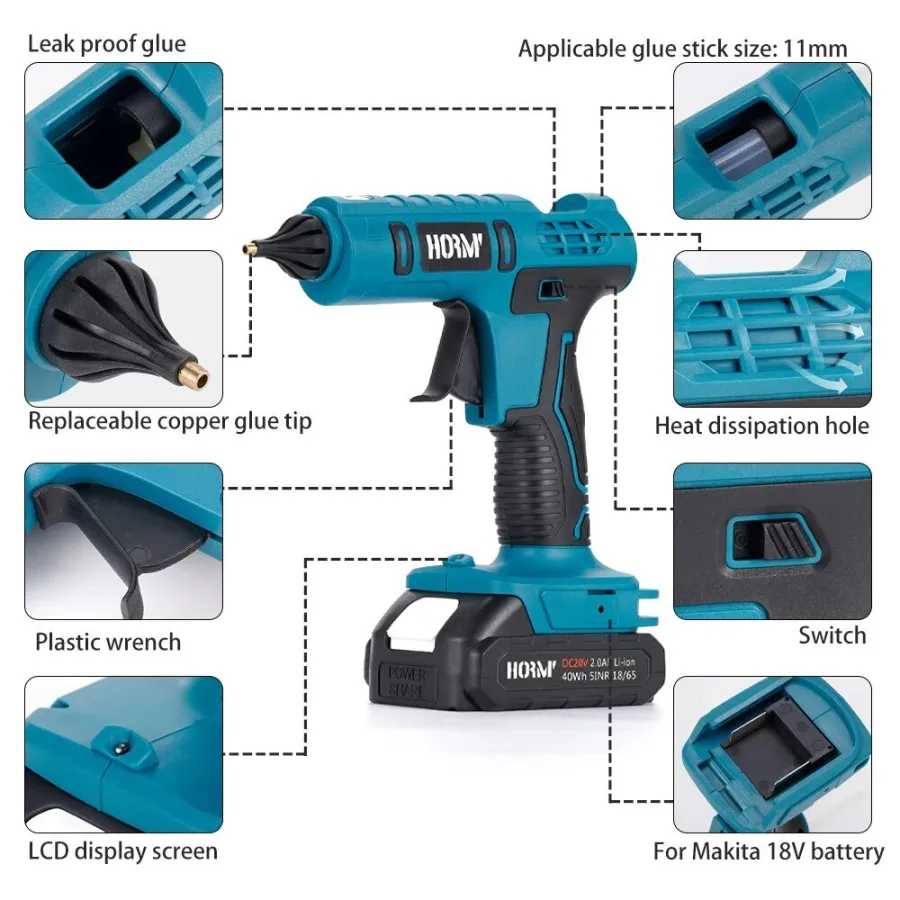 • Compatible with Makita 18V battery:This glue gun is designed to work seamlessly with Makita 18V batteries, making it easy to use and convenient for on-the-go projects.